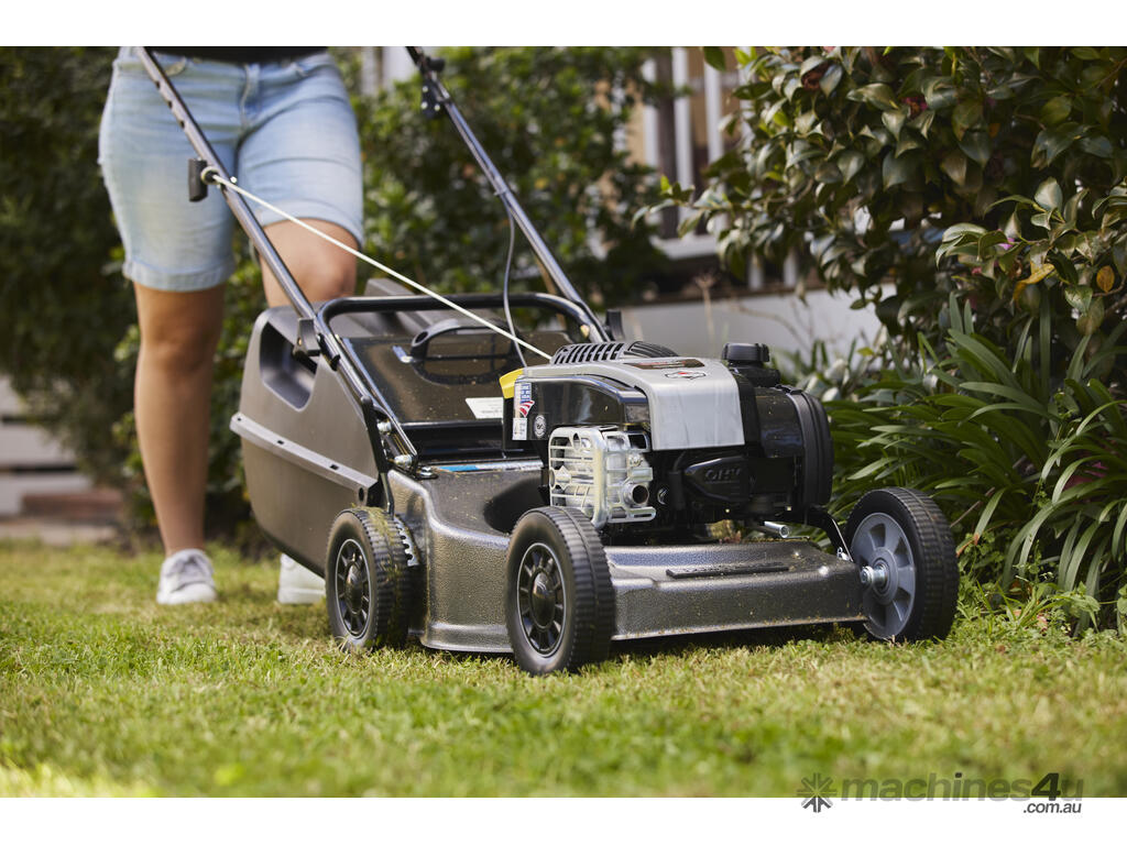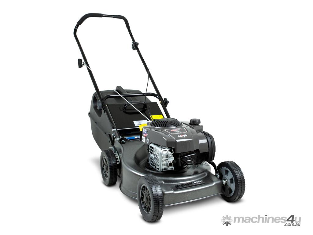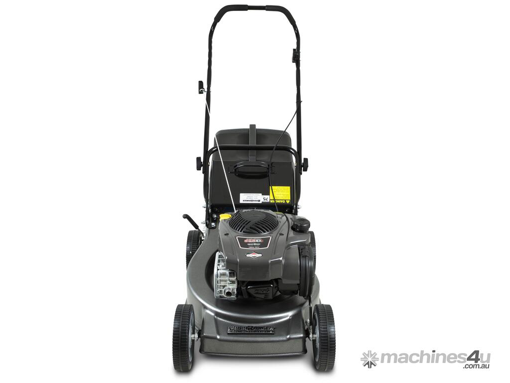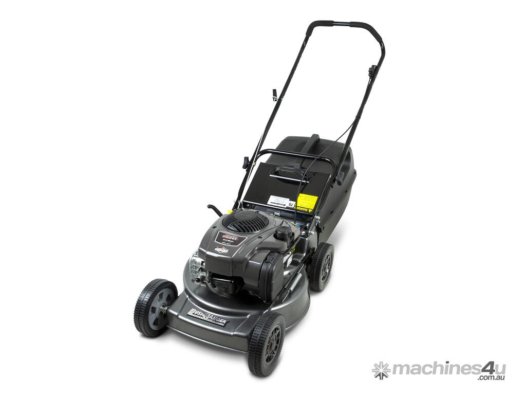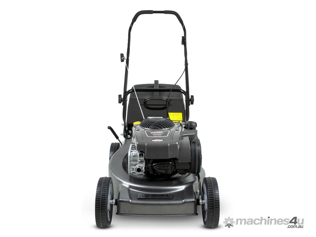 Designed to deliver unprecedented reliability and performance, Bushranger 625 series mowers are built from pressed steel for strength and feature 203 mm dual ball bearing wheels front and back. Beneath the chassis is the 4 blade swing back disc giving you 460 mm cutting width, complete with plug to mulch the grass further and high zone air filter keeping your engine clean. All this powered by an industry favourite Briggs & Stratton 625 series 4 stroke air cooled engine with easy starting ignition system and added protection though paper air filters. Backed by an industry warranty, Bushranger is unparalleled in performance and peace of mind.
