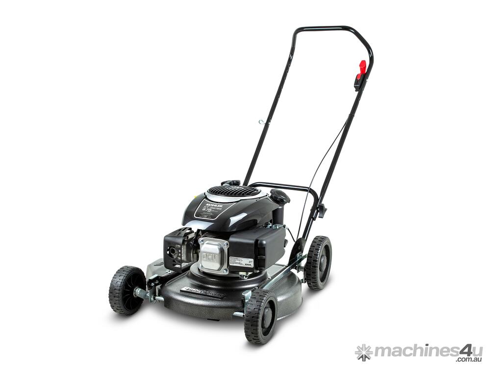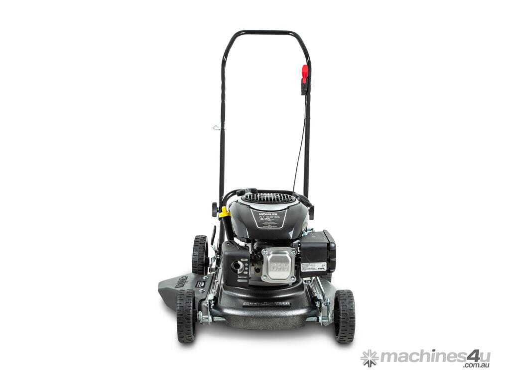 The Bushranger 18" (460 mm) cut domestic Utility walk-behind lawn mower features a side discharge steel chassis. A Kohler XT675 (149 cc) engine, a 12-position height adjuster and is ideal for conditions where catching is not required.