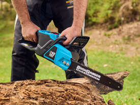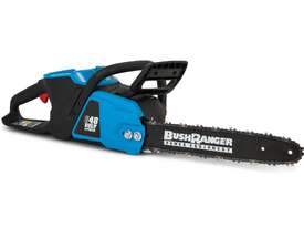 The Bushranger 48CS18 is a lightweight yet powerful battery chainsaw designed for medium to large gardens. The digital 48V 1.8kW brushless motor delivers strong power and torque for an ideal blend of performance and maneuverability for effortless cutting tasks. Safety is paramount with its two-button start-up and chain brake system, ensuring peace of mind during operation and the battery is interchangeable with all other Bushranger 48V tools, offering versatility and convenience.