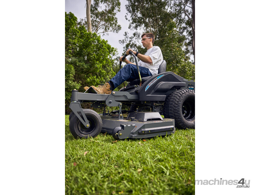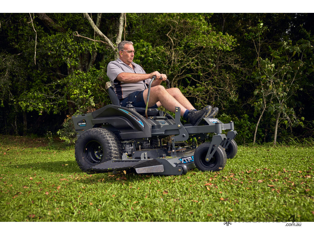 The Bushranger RZPRO series ZTR’S are built and perform like a commercial grade mower but at an affordable price. The Bushranger RZPRO handles lawns of all sizes with ease and comes packed with premium features that are all included as standard, and truly make the Bushranger RZPRO stand out from the rest. Features like the commercial grade Kawasaki FR730V V-Twin engine, safety features like being perfectly balanced with a low centre of gravity combined with GT Trac for the best traction on inclines. The easy touch brake system, the foot assist easy-lift deck, an ergonomic cockpit with an extremely comfortable seat and large fuel tank will have you happily and safely mowing for hours without having to stop until the jobs done.