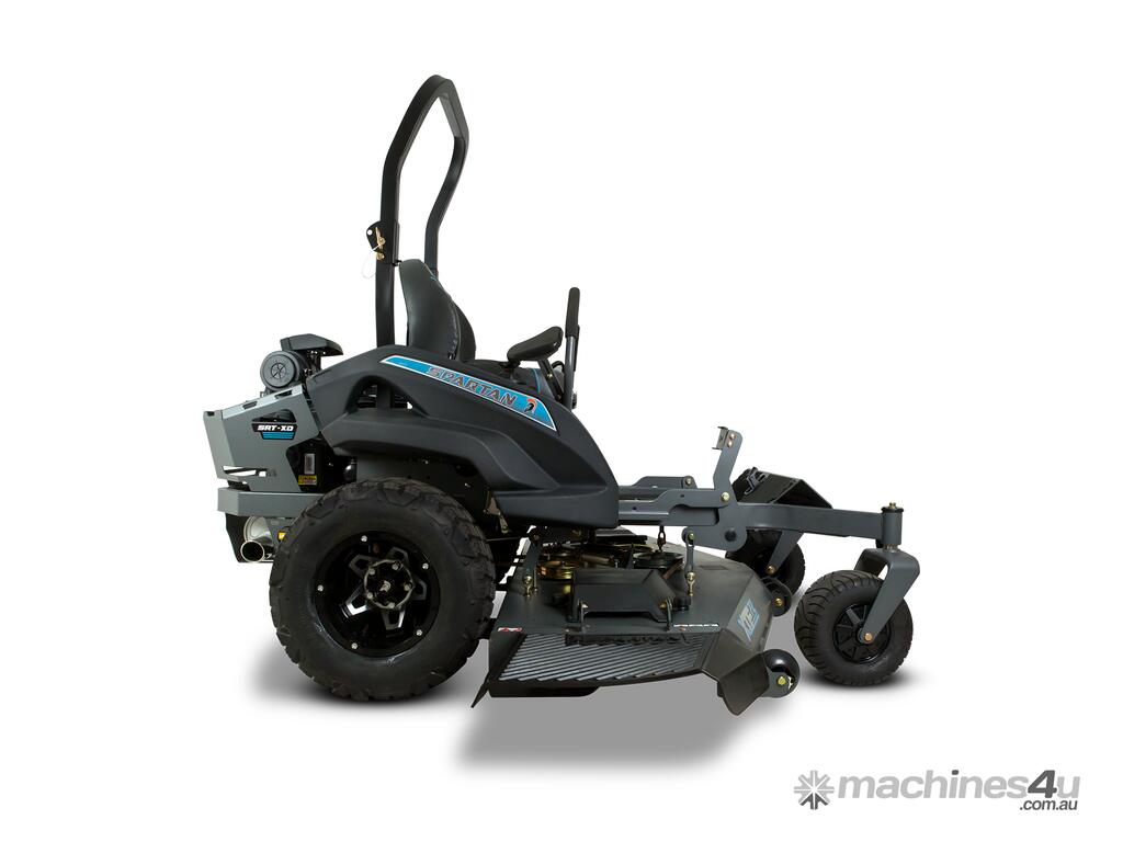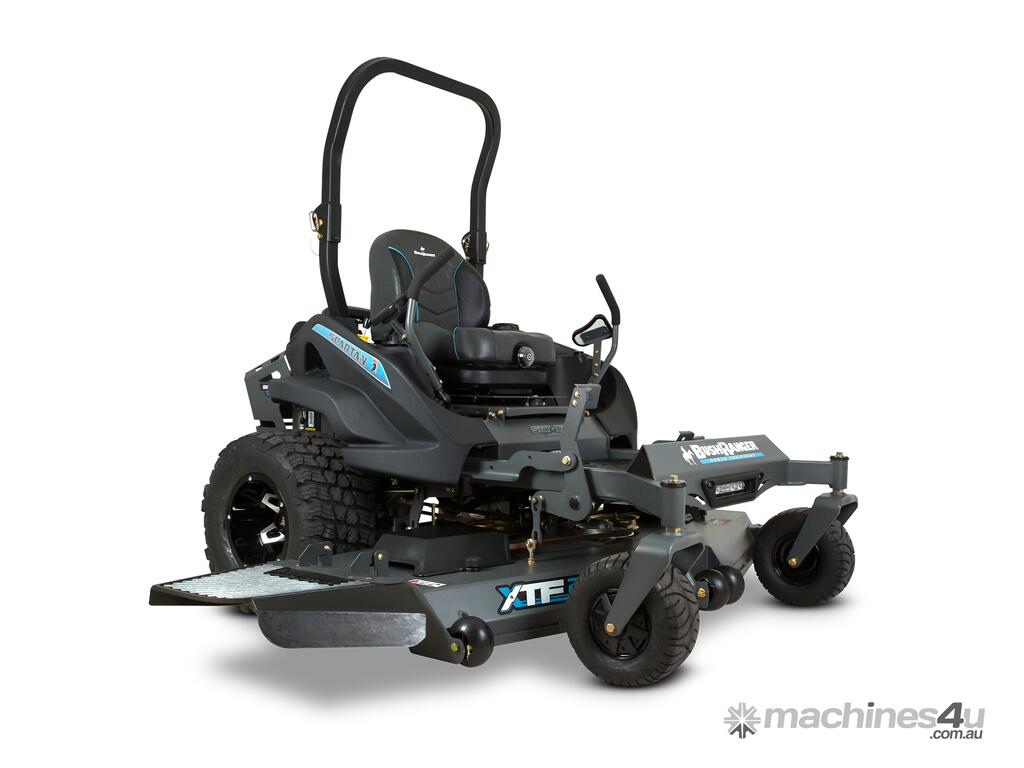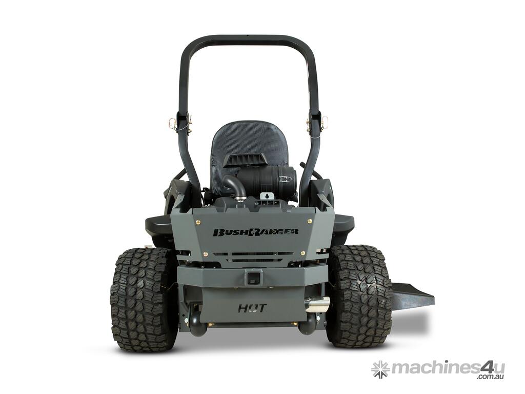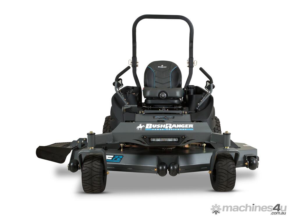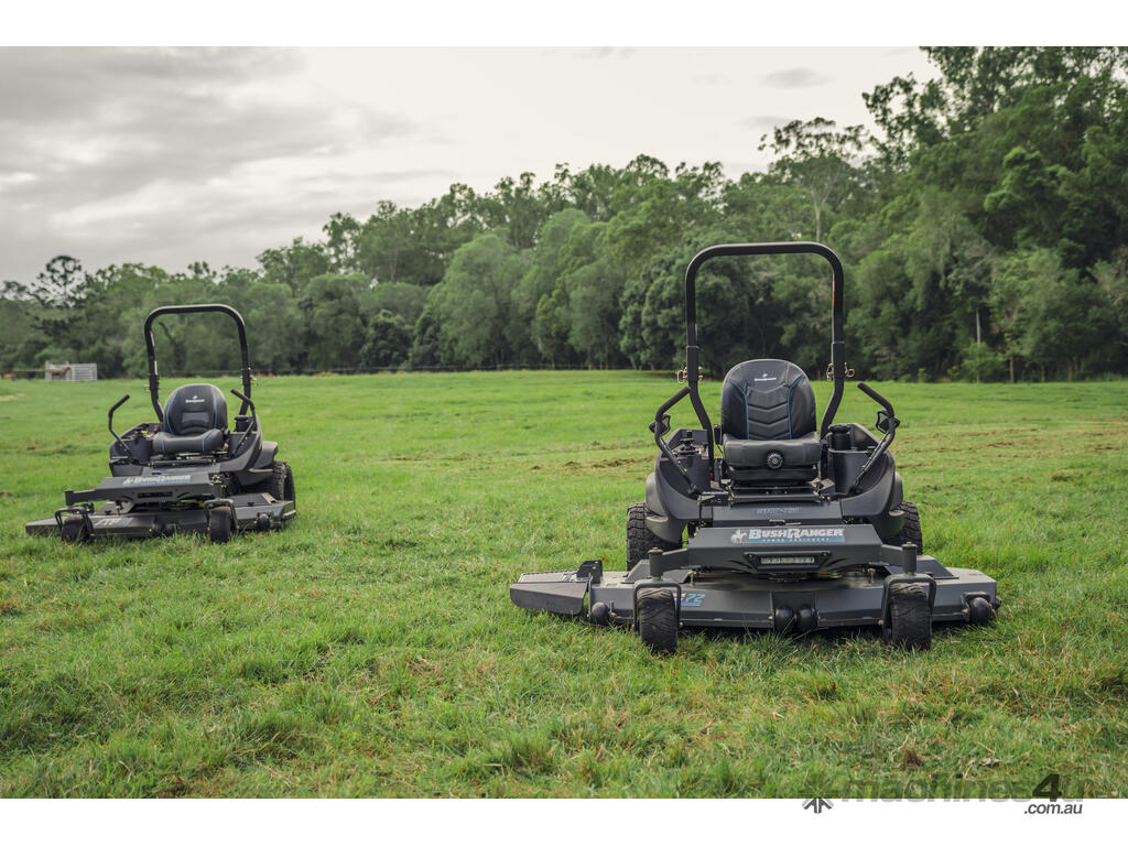 The Bushranger SRTXD series is a heavy-duty commercial mower that eats up lawns of all sizes with ease and comes packed with premium features that are all included as standard, and truly make the Bushranger SRTXD stand out from the rest. Features like the premium commercial grade Kawasaki FX1000V EFI, 38.5 hp electronic fuel injected engine. Or safety features like being perfectly balanced with a low centre of gravity combined with GT Trac for the best traction on inclines. Then there is the easy touch brake system, the foot assist easy-lift deck, and the ergonomic cockpit, with all controls in easy reach. On top of this all SRTXD series mowers come equipped with a Smart Ride Technology package. Including upgraded custom-built seats which are adjustable for operator weight and up and down movement. The middle and back Elastomer Tecspak and front neoprene cushioning in the seat absorbs any shocks or bumps. This along with the soft ride front and rear radial tyres and the very clever frame design with independent rear coil springs makes the SRTXD one of the smoothest and most comfortable riding mowers available. When you combine all these features plus the large fuel tank together it will have you happily, safely and comfortably mowing for hours, without having to stop until the jobs done.