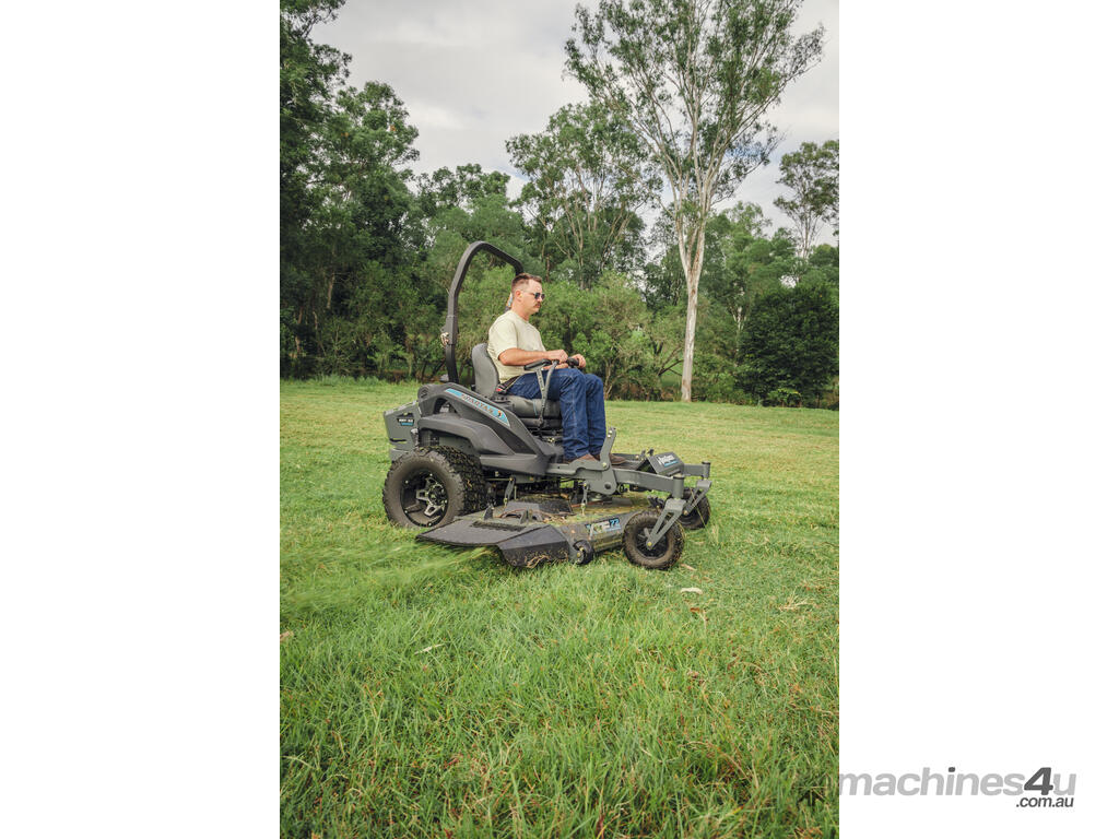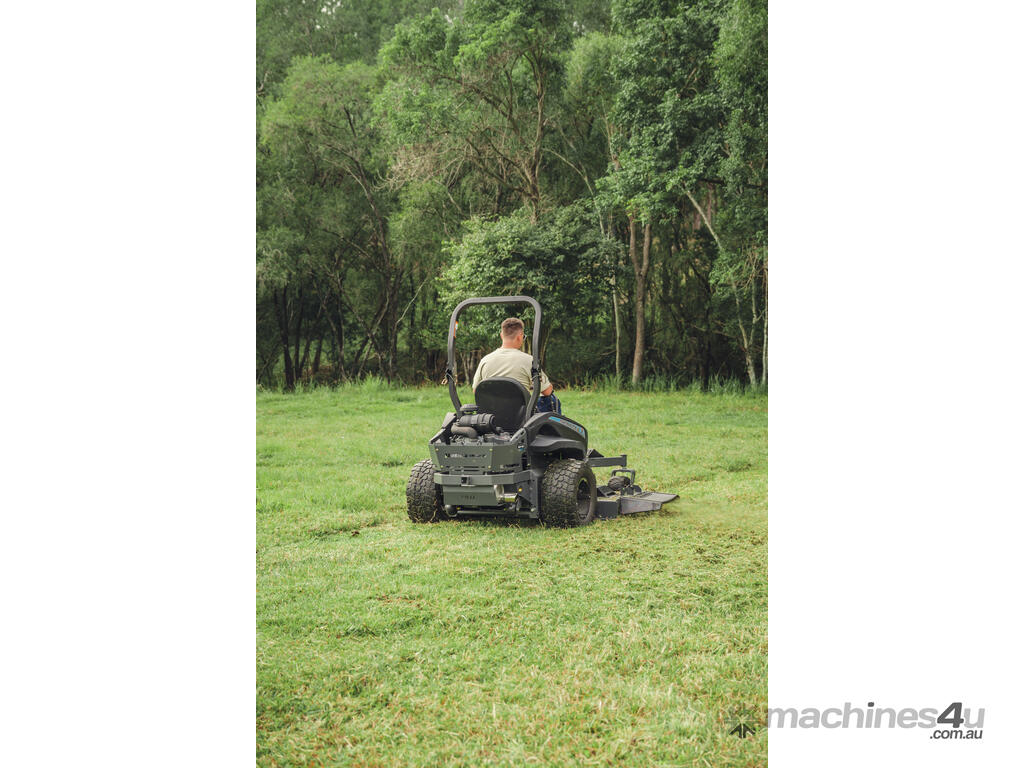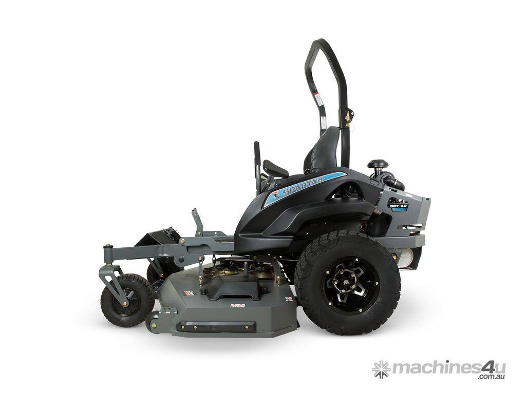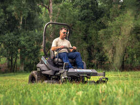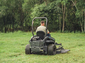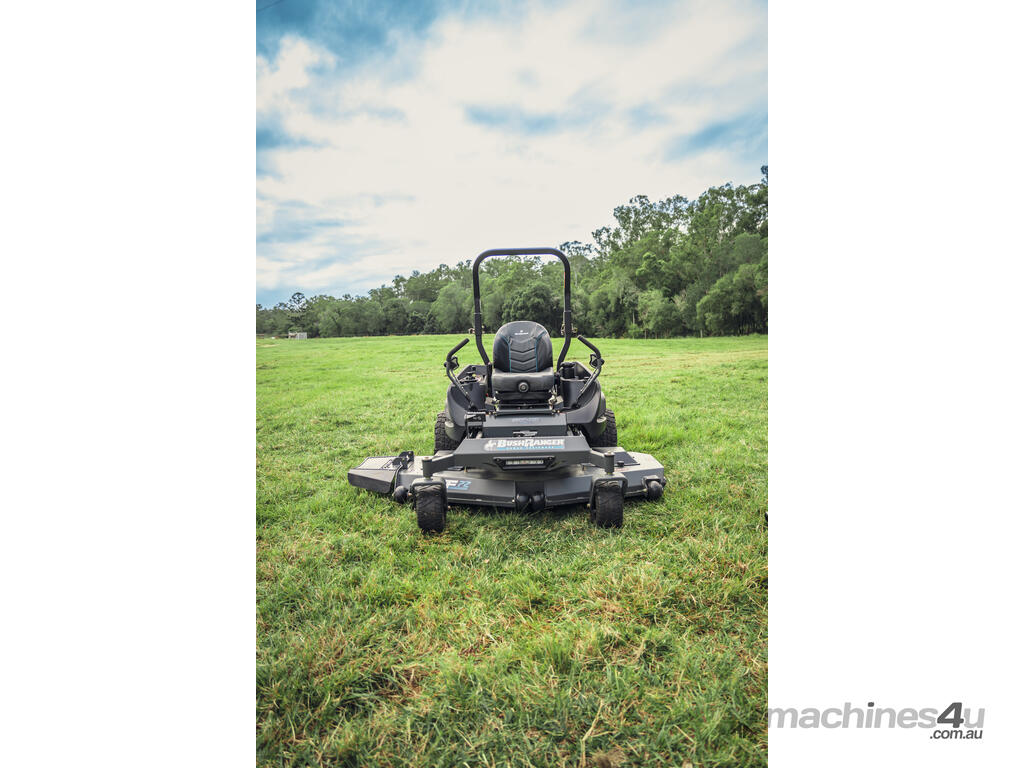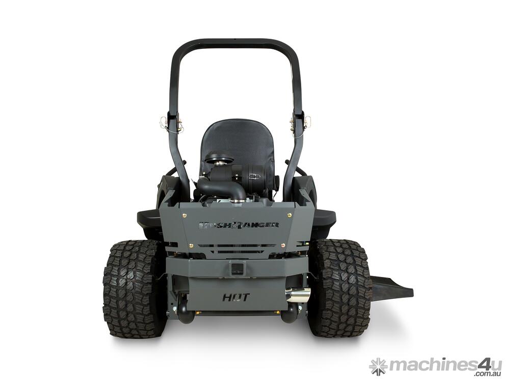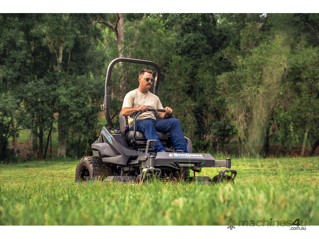 The Bushranger SRTXD series is a heavy-duty commercial mower that eats up lawns of all sizes with ease and comes packed with premium features that are all included as standard, and truly make the Bushranger SRTXD stand out from the rest. Features like the premium commercial grade Kawasaki FX1000V, 35 hp engine. Or safety features like being perfectly balanced with a low centre of gravity combined with GT Trac for the best traction on inclines. Then there is the easy touch brake system, the foot assist easy-lift deck, and the ergonomic cockpit, with all controls in easy reach. On top of this all SRTXD series mowers come equipped with a Smart Ride Technology package. Including upgraded custom-built seats which are adjustable for operator weight and up and down movement. The middle and back Elastomer TecsPak® and front neoprene cushioning in the seat absorbs any shocks or bumps. This along with the soft ride front and rear radial tyres and the very clever frame design with independent rear coil springs makes the SRTXD one of the smoothest and most comfortable riding mowers available. When you combine all these features plus the large fuel tank together it will have you happily, safely and comfortably mowing for hours, without having to stop until the jobs done.