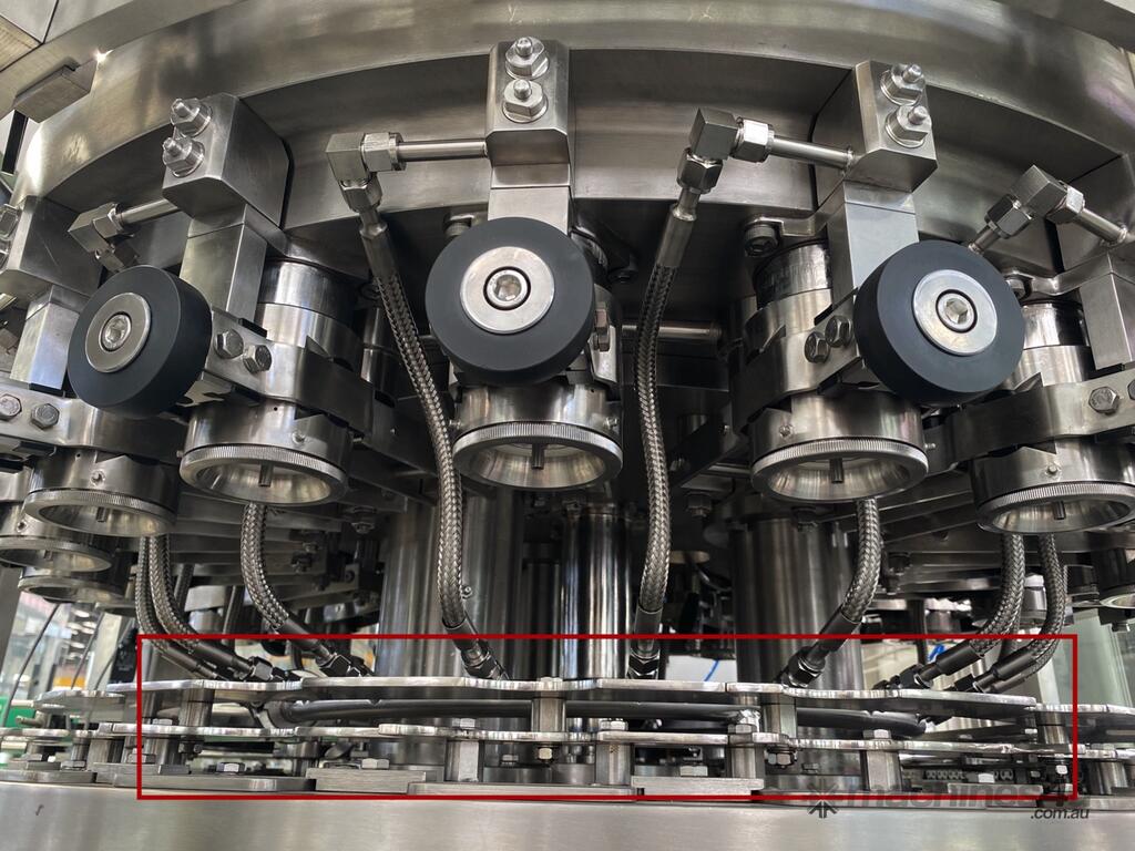 Electric lift of filler bowl via Touch screen to preset menu for varying Can heights, SKF auto lube system, Tangential can transfer from filler to seamer. Controlled sniffting piped to waste , Ceramic Lined Rotary distributor