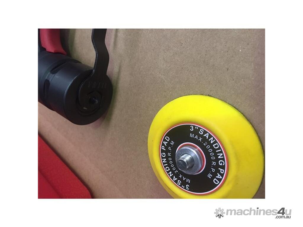 CAPS C13151 3" & 5" high speed pistol sander provides a free spinning speed of 16,000rpm for high power performance. All this power is built in a compact lightweight housing, created with fewer parts than its electric counter parts making it more comfortable for long periods of use.