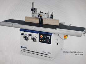12. SCM T120 CLASS TILTING SPINDLE MOULDER 2500mm EXTENSION CAST IRON FEED TABLE, 45deg TILT FORWARDS & BACKWARDS, 5.5kw 7.5hp 415v, AUTO BRAKE, 5-SPEEDS to 10,000rpm, FORWARD & REVERSE, VERY GOOD CONDITION