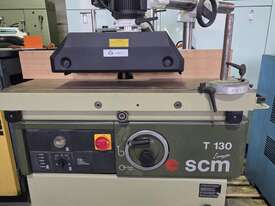 10. SCM T130N SPINDLE MOULDER 5.5kw 7.5hp 415v, LATE MODEL, MADE IN ITALY, FOOT BRAKE / FOOT LOCK, 5-SPEEDS to 10,000rpm, FORWARD & REVERSE, INCLUDING CO-MATIC MULTI SPEED 3 x WHEEL POWER FEED UNIT 240v, FULL SET OF MANUALS / TOOLS. WELL ABOVE AVERAGE CONDITION, 1 x OWNER. REQUEST EXTRA PHOTOS
