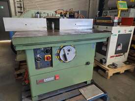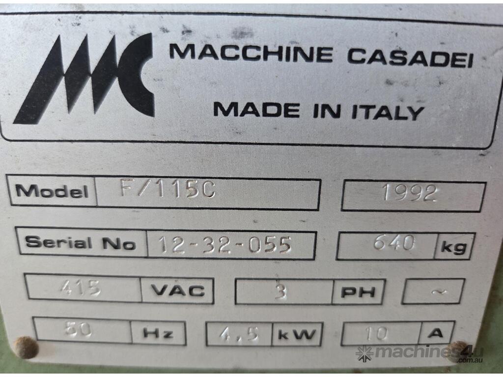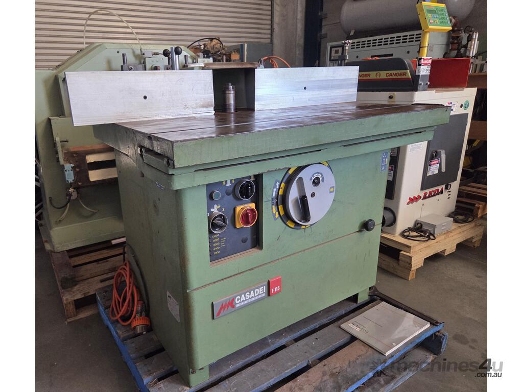 1. CASADEI F115C SLIDING TABLE SPINDLE MOULDER 4.6kw 6hp 415v, Year 1992 MADE IN ITALY, BRAKE, 5-SPEEDS to 10,000rpm, FORWARD & REVERSE. HEAVY DUTY MODEL, LARGE 1.1m x 1m TABLE. PROVISION FOR POWER FEED