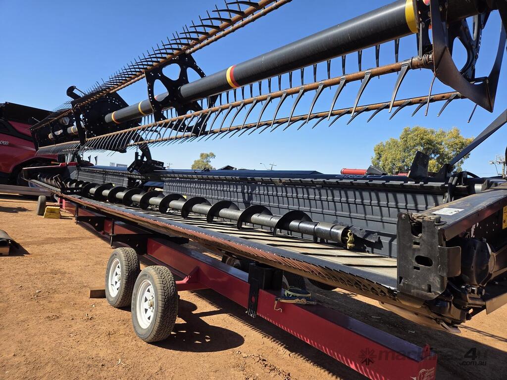 Case IH 2152 40ft Draper Front in great condition, with knife, cutter bar, knife drive, draper mats, hydraulics, reel tines, stabilizer wheels, and panels all in good condition. Full-length comb trailer included.
