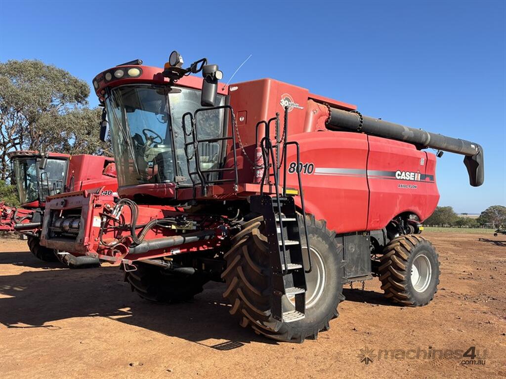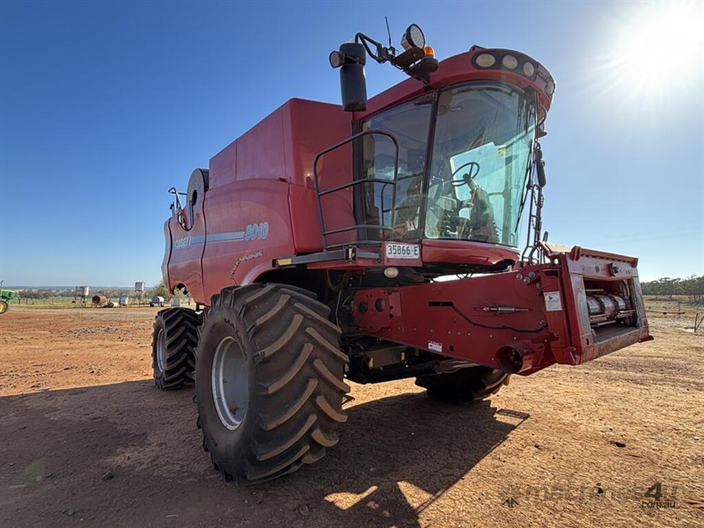2007 CASE IH 8010, S/N: HAJ200055, updated feeder house off 8120, extensive maintenance carried out in 2024, over $90, 000 spent with reciepts, major work carried out includes, feeder drive sprockets, feeder chain, new transition cone, unload auger gearbox replaced, shaker bushes, repair to rear axle pivot, rear wheel bearings and king pins, new clean grain auger and much more, Trimble guidance with 372 reciever, Engine hrs: 6811, Rotor hrs: 4417, comes with 2014 model 40' 3152 draper front with cross auger