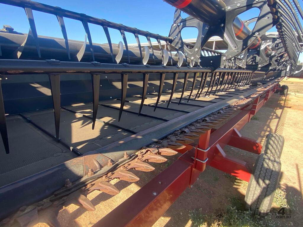 Case IH 9250 AFS Combine Harvester with MacDon Front On Trailer