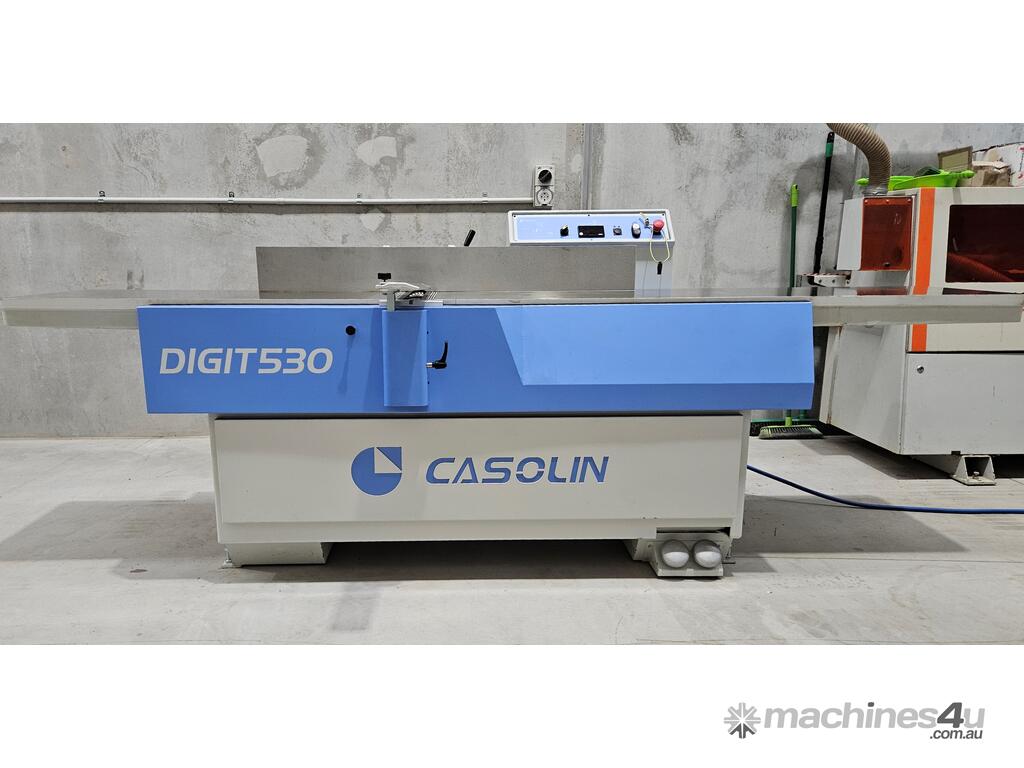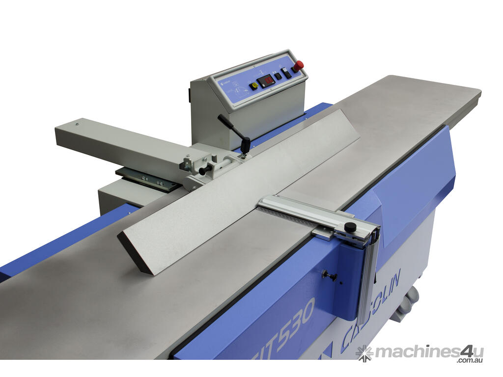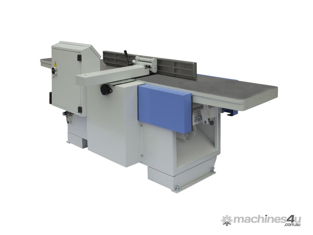 Surface planer model Digit 530 , modern machine safe and easy to use. Perfect finishing of planed surfaces resulting from the heavy lattice structure of steel base and accurate precision machining. The electrical drive of the incoming surface using the two pedals on the floor and the guide that can be tilted on the servo drive surface, make the machine comfortable to use. Blade protection with a swivel bridge and vertical adjustment , makes machining safer. The surface of the two planer table are perfectly ground.