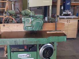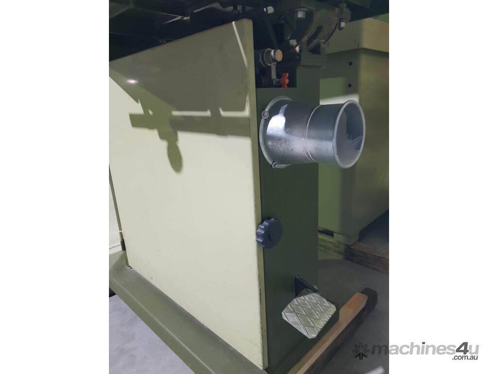 REVERSE SPINDLE ROTATION, ELECTRIC BRAKE CONTROLLED BY OVERHEAD CONSOLE, PRECISION 45degree TILT GLASS READOUT, FOLDING HANDLES FOR TILT PLUS RISE AND FALL HANDWHEELS, FULLY ADJUSTABLE TENONING TILTING TABLE, MANUAL CLAMP FOR WORKPIECES. VERY HEAVY DUTY, VERSATILE TOP QUALITY MACHINE.