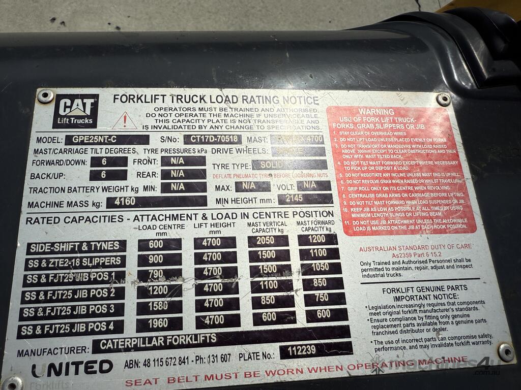 2021 CAT Forklift – GPE25NT-C 2.5 Tonne Capacity