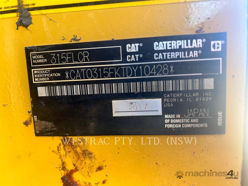 2017 CAT 315FLCR TRACK EXCAVATORS LOCATED IN CASULA , 7028 SMU / HOURS