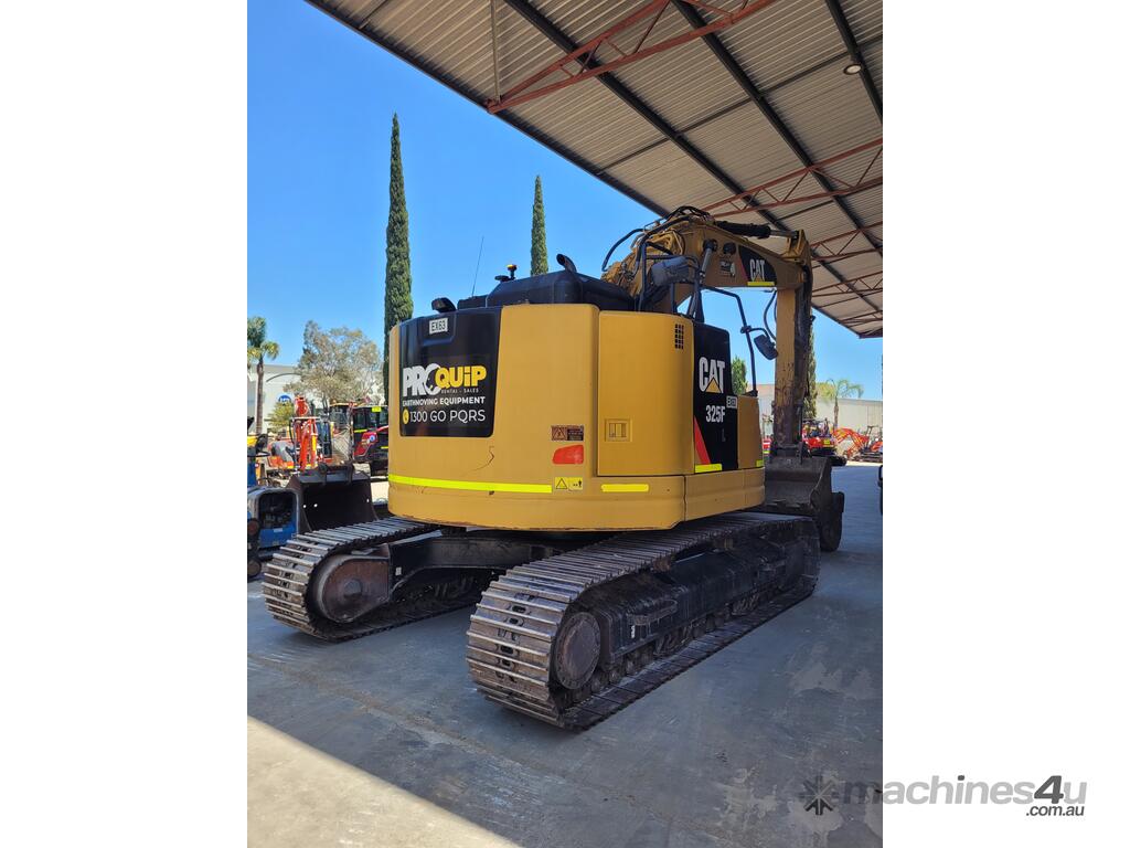 2017 CATERPILLAR 325FLCR 26t EXCAVATOR WITH 5272 HOURS, REDUCED RADIUS, LONG CARRIAGE, STEEL TRACKS, HYDRAULIC SAFETY HITCH, FULL A/C CABIN WITH ROPS, TWO WAY FLOW AUXILIARY HYDRAULICS, REAR VIEW CAMERA, SAFETY HANDRAILS, CHECK VALVES, UHF RADIO, E-STOPS, FULL CIVIL SPEC, GP AND MUD BUCKET.