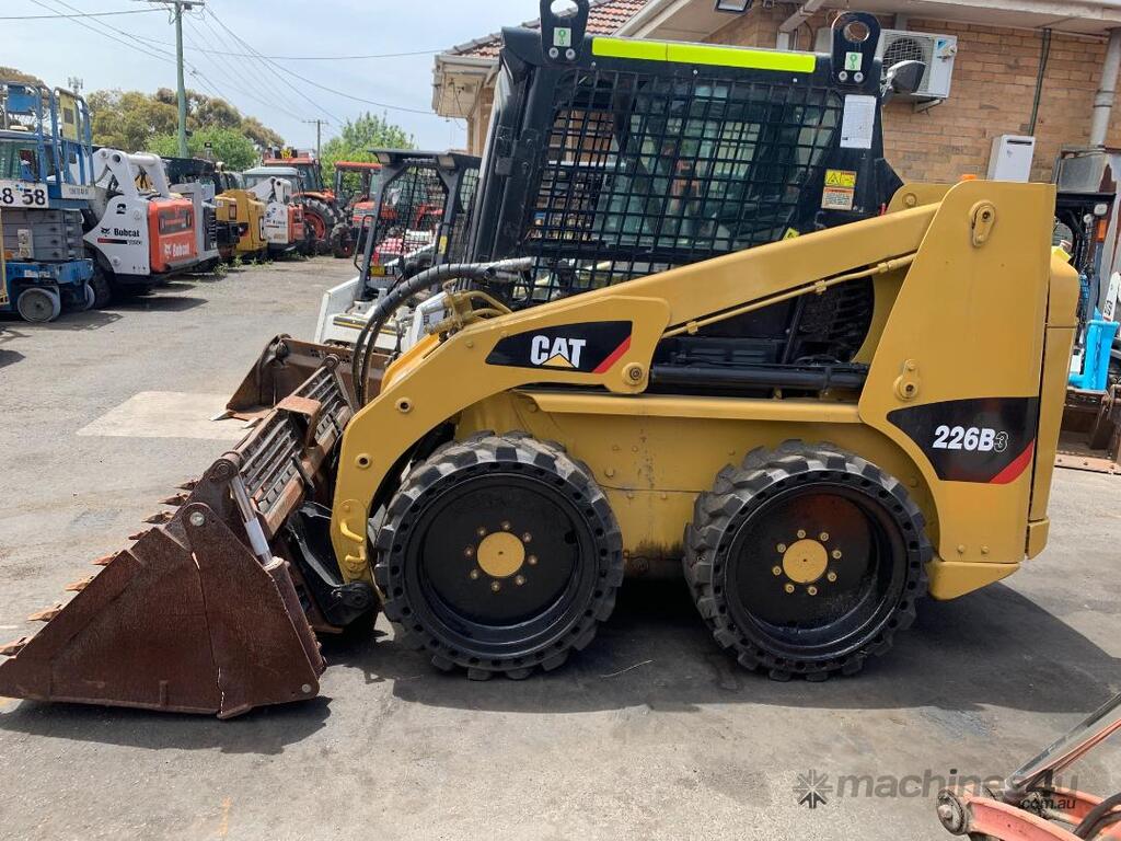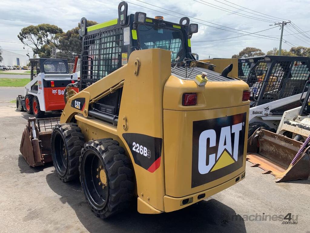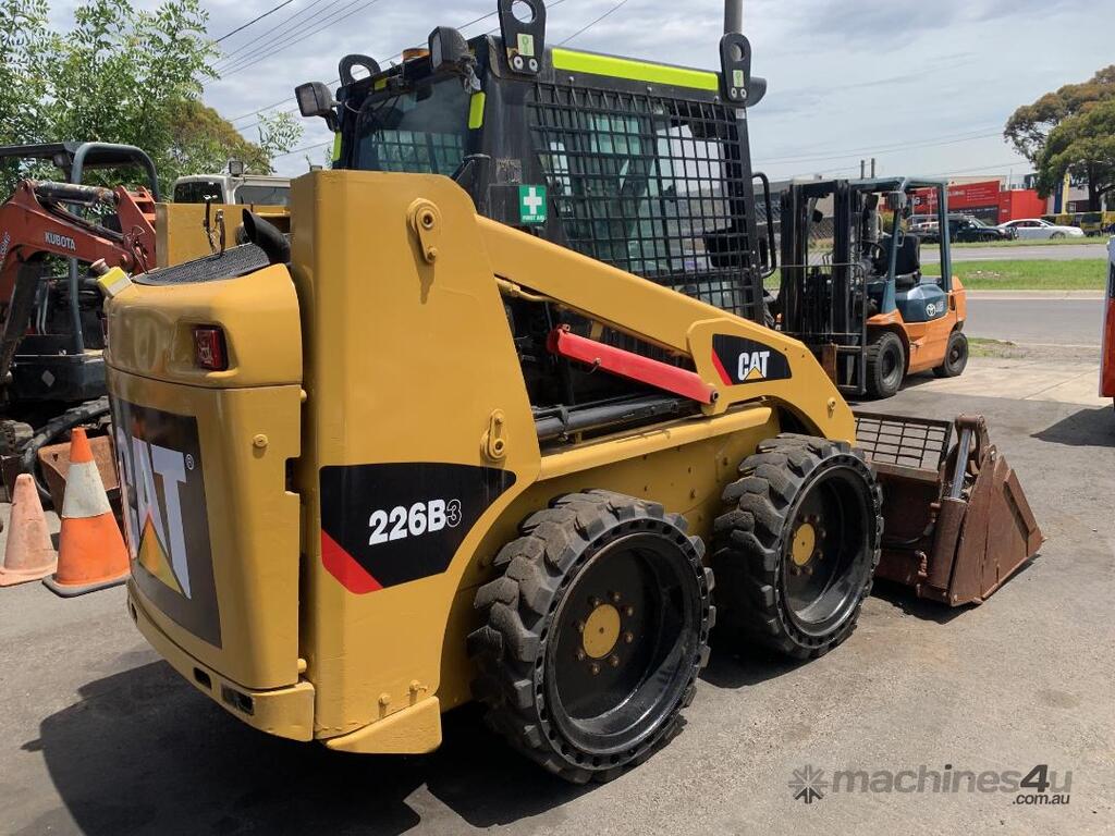 Caterpillar 226B3 Skid Steer Loader, 2011 model, s/n. CAT226B AMWD00924, air conditioning cabin, , 2.64 tonne, 60 HP, auxiliary hydraulics variable flow, 4 in 1 bucket, joy stick hand control drive and lift-tilt-open bucket, hydraulic control for quick attach bucket, reverse camera with monitor, solid rubber tyres with suspension holes, 2308 hours, $39,950.00 + GST.