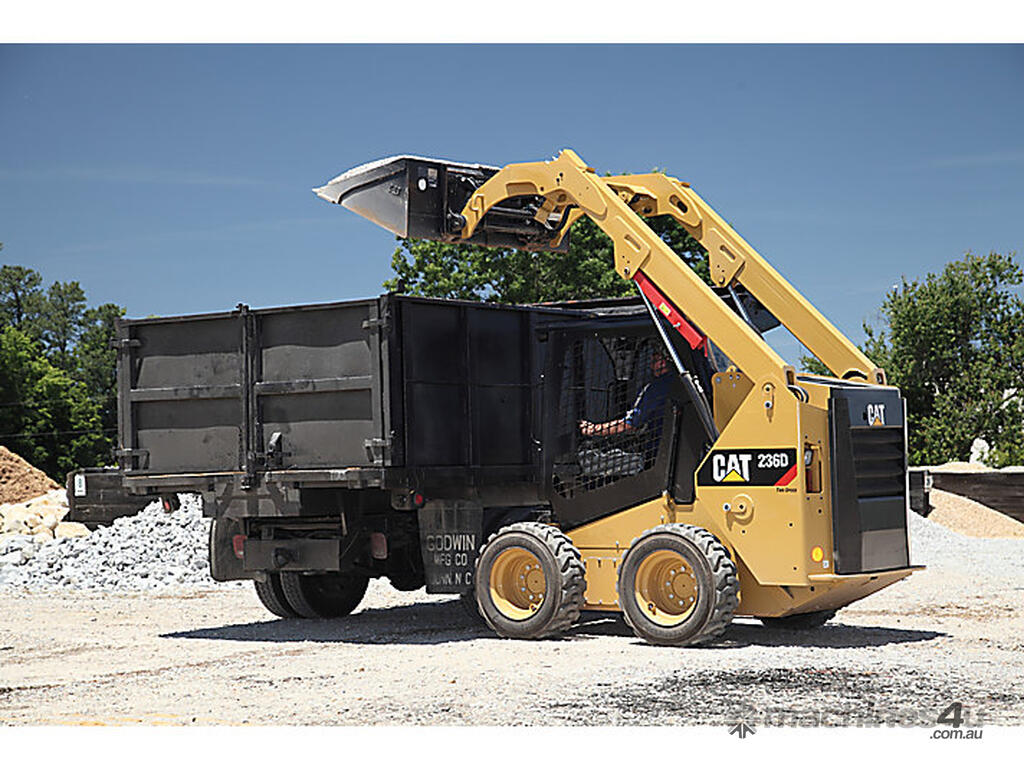 The Cat® 236D3 Skid Steer Loader, with its radial lift design, delivers impressive mid-lift reach and excellent digging performance with outstanding drawbar power.