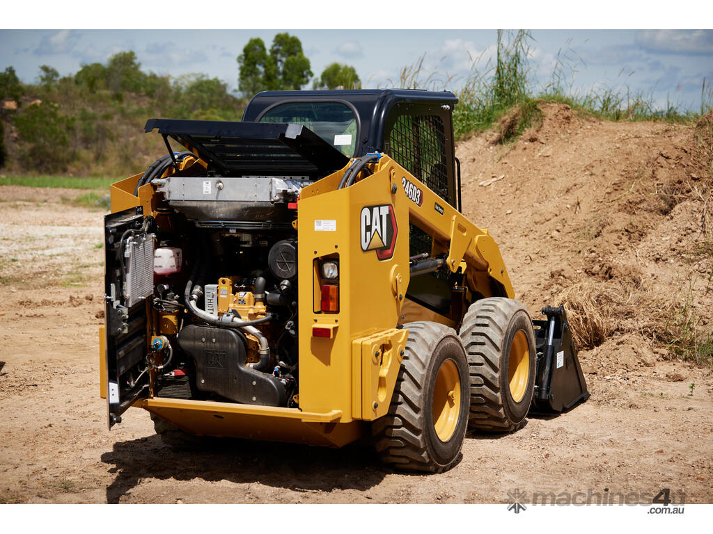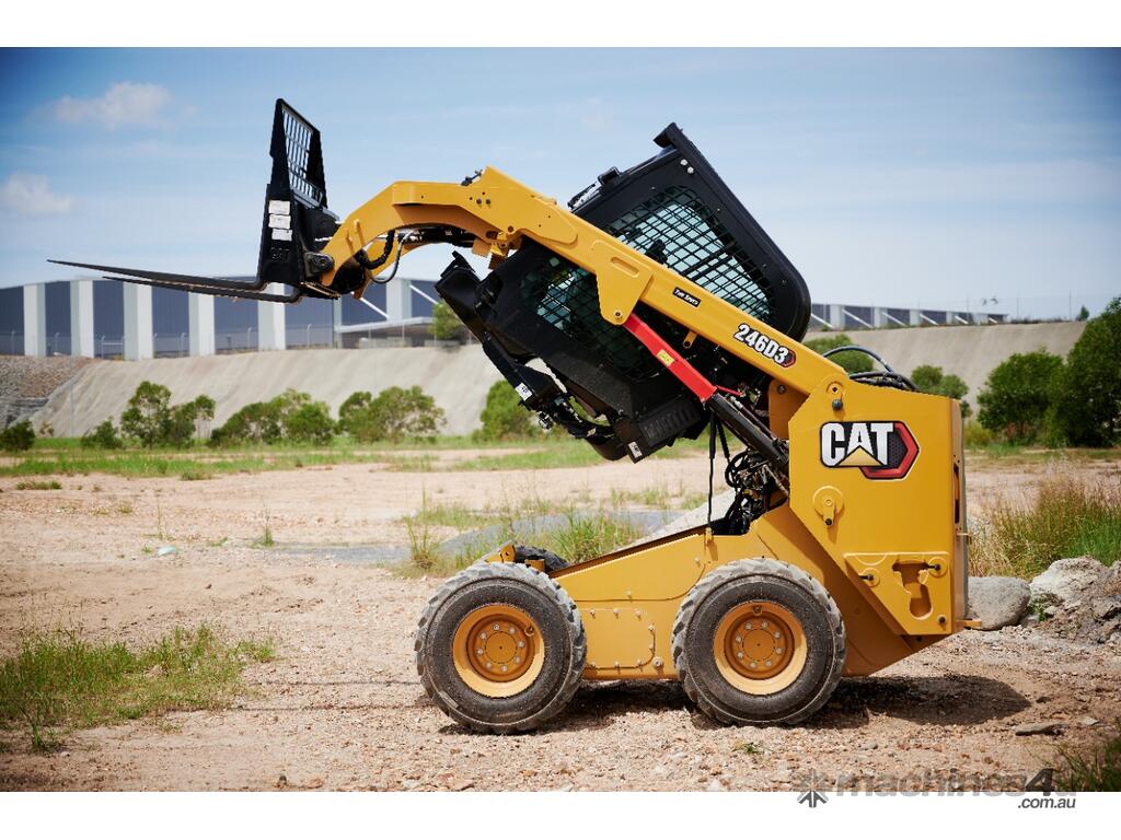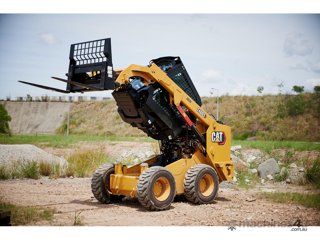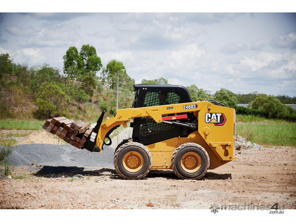 The Cat 246D3 Skid Steer Loader, with its radial lift design, delivers impressive mid-lift reach and excellent digging performance with outstanding drawbar power.