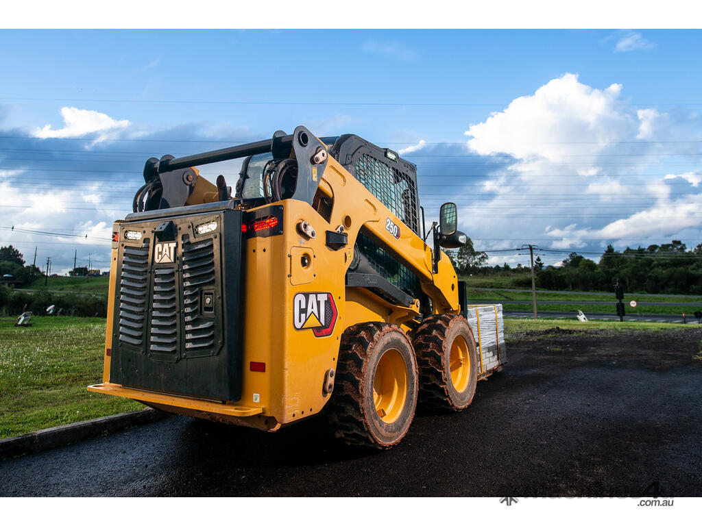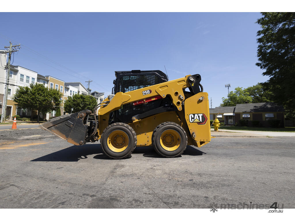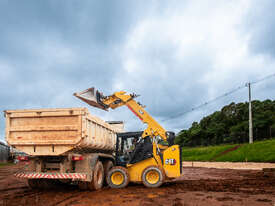 The Cat® 250 Skid Steer Loader, with its vertical lift design, delivers extended reach and lift height for quick and easy truck loading. Its stability and lifting performance provides excellent material handling.