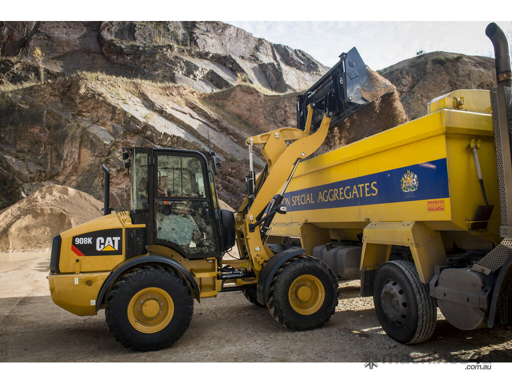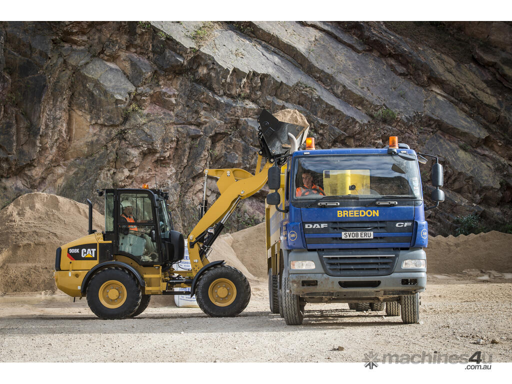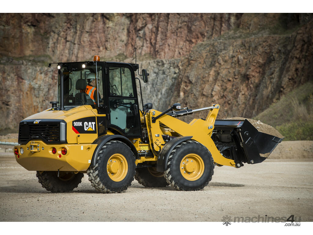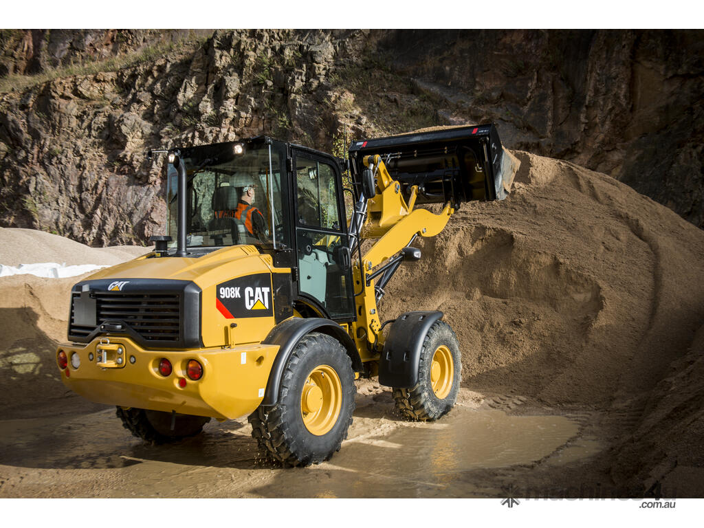 Cat® wheel loaders set the standard for productivity, fuel efficiency and operator comfort. The Cat 908 Compact Wheel Loader has a high torque C2.8 engine that works in conjunction with an intelligent hystat power train to deliver exceptional fuel efficiency. “Shift on the go” locking differentials and hydrostatic transmission provide smooth and powerful operation while increasing the efficiency of machine cycles.