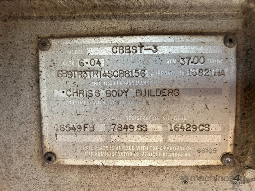 Description: 2004 Chris Body Builders 36'x6' TOA TubrHendrickson Intraax suspension and axles on drum brakes, Alloy wheels, Toolbox & Watertank, near new tarp