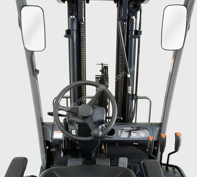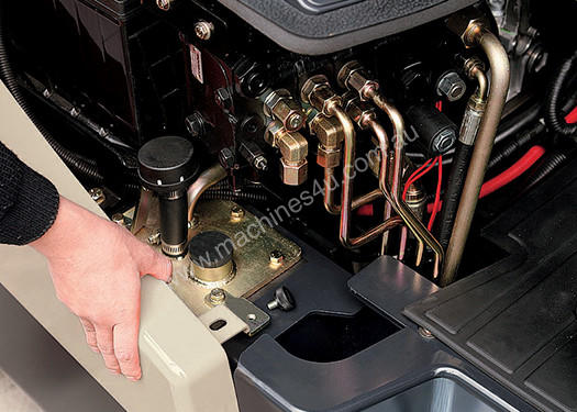 The spacious, well-planned operator compartment features ample legroom, a tilt able steering column, low-cowl height, and ideally positioned operator pedals.