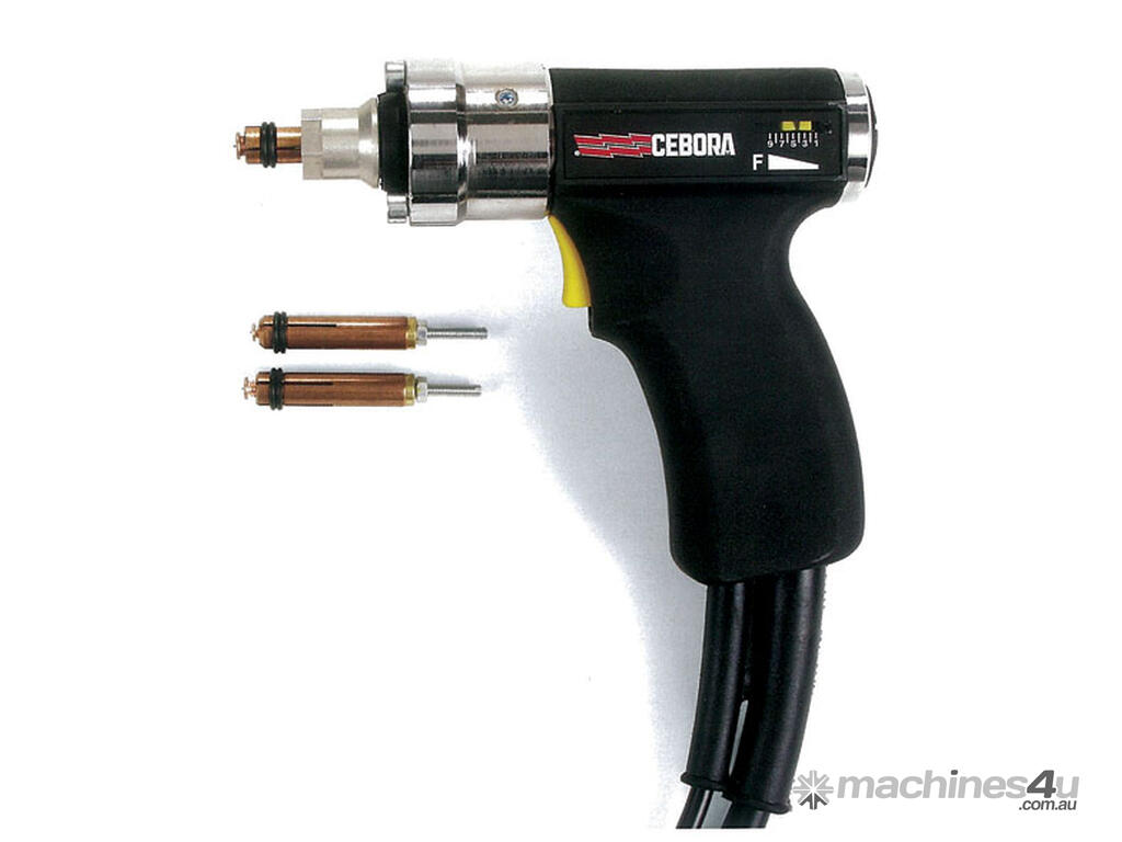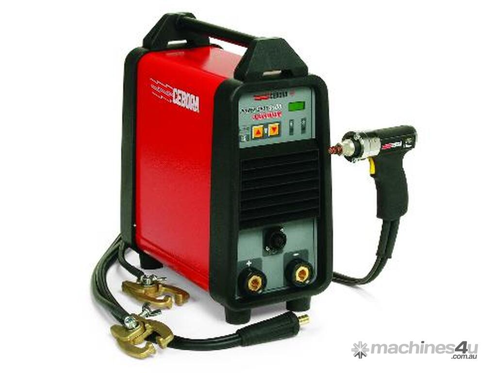 Single-phase capacitor discharge power source for welding rivets on all kind of sheet metal (iron, stainless steel, aluminium). Comes with gun, earth cable and accessories bag (wrench, rivet mandrels, synthetic steel wool, 1 conf.).