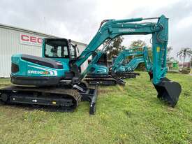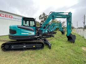 The SWE90UF model is 9 ton limited tail swing midi excavator. Features include a factory longer dipper arm, an impressive 65HP engine, advanced LED display touch screen to monitor your machines performance, factory standard double auxiliary piping, burst valves, hydraulic hitch included with this model and an impressive break out force. This 9 ton excavator is sure to impress. Powered by Japanese hydraulics and Japanese premium engine.