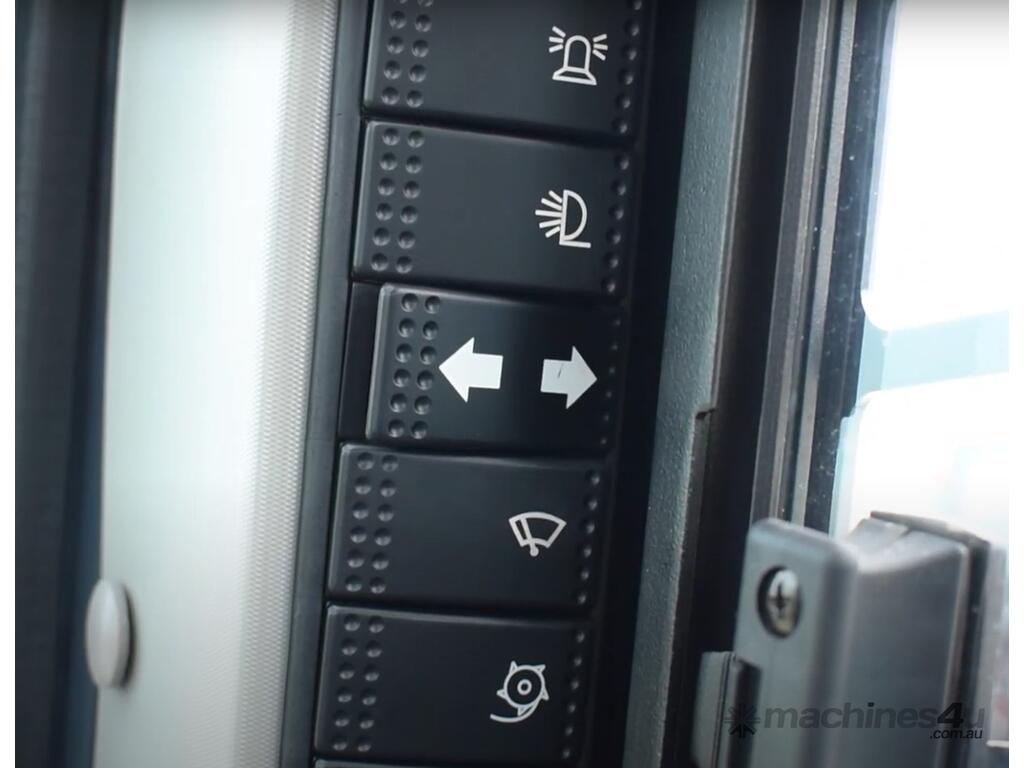 The Cab is spacious with a wide entrance, a comfortable seat, ergonomic controls, and excellent all-around visibility.
