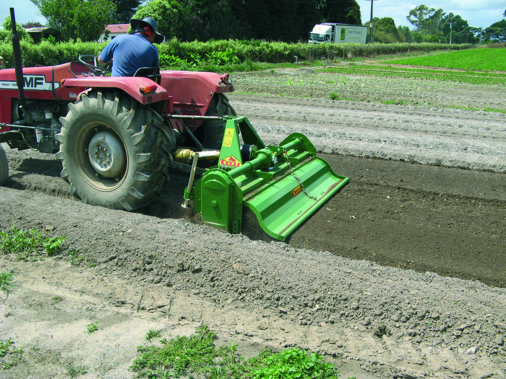 Medium duty rotary hoe with gear side drive. Suitable for tractors up to 55 hp.