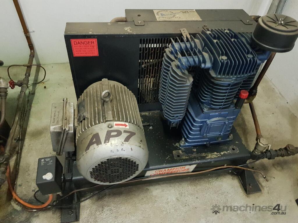 1). CHAMPION AP7 5.5Kw 7.5hp INDUSTRIAL RECIPROCATING COMPRESSOR, IN-BUILT AFTER COOLER, VERY HEAVY DUTY, MADE IN AUSTRALIA, 2-STAGE ITALIAN CAST IRON PUMP (REPLACED), GOOD WORKING CONDITION. BARGAIN!!