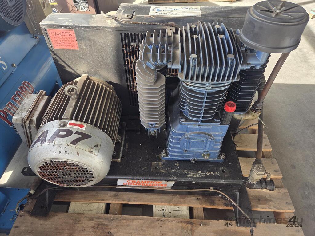 1). CHAMPION AP7 5.5Kw 7.5hp INDUSTRIAL RECIPROCATING COMPRESSOR, IN-BUILT AFTER COOLER, VERY HEAVY DUTY, MADE IN AUSTRALIA, 2-STAGE ITALIAN CAST IRON PUMP (REPLACED), GOOD WORKING CONDITION. BARGAIN!!