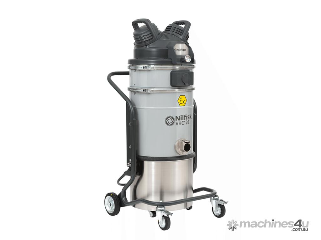 The compressed air vacuums grant respect for the environment and the most safety level for the operators even in hazardous locations. Thanks to the new generation multistage vacuum system, it guarantees the best performance, as far as air flow rate is concerned, together with very efficient compressed air consumption. Compact and light VHC120 is equipped with a 37 l container. This unit can be delivered painted or stainless steel, as well as in a flameproof ATEX-compliant version (for zones Gas 1-2 and Dust 21-22), where the new inlet ensures only Atex certified accessories to be connected on, thus avoiding any improper use thanks to the new Atex Accessories Concept. Filtration is provided by an improved Antistatic M class Star Filter. The VHC120 is always equipped with a pressure gauge. VHC120 is the ideal industrial vacuum for shipyards, metalworking companies, oil refineries, chemical industries, spray-painting facilities, rifle ranges applications, as well as in the food industry, whenever in presence of static electricity (working with sugar or flour), on building sites, and during surface treatment operations.