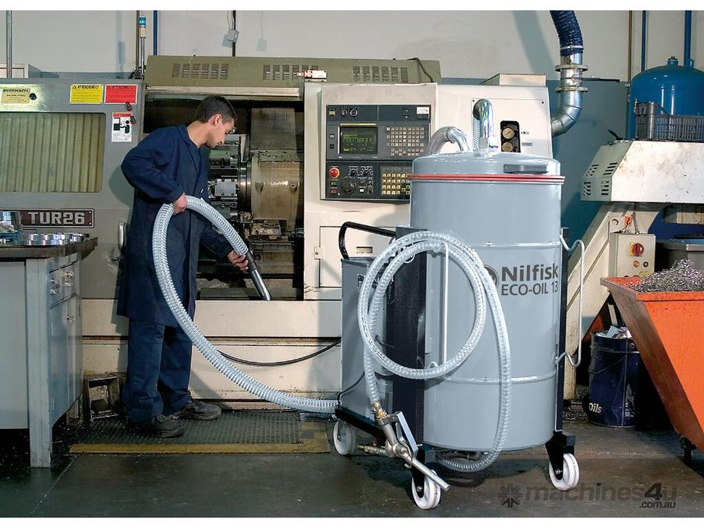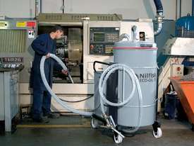 In a CNC machine tool many litres of coolant/oil are used in order to cool the cutting tool during the process. This ``liquid`` is expensive and has to be re-used. Thanks to the OIL series, this job can be done in a very short time. The swarf is retained into a basket and just the ``liquids`` fall down into the main tank where an electrical liquid cut-out will stop the motor when the maximum level is reached. Then thanks to the gun the coolant is re-ejected into the machine tool for re-using. This operation can be done while sucking the material and has a great advantage in terms of money as the oil/coolant keeps its property assuring perfect workmanship.