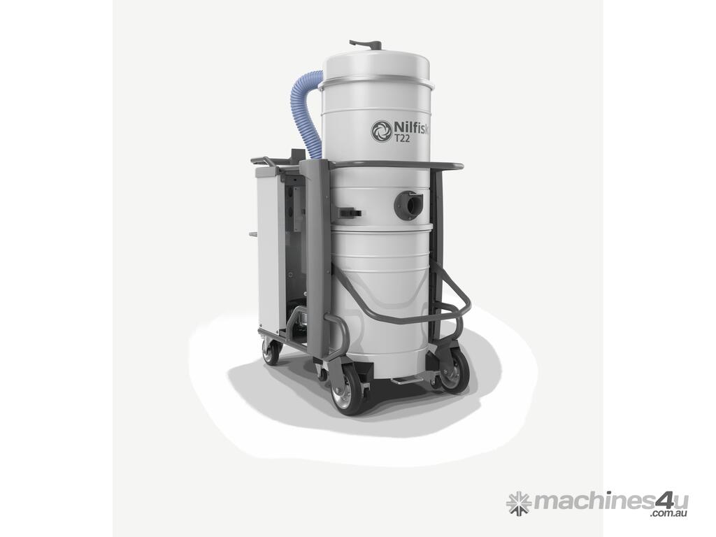 Thanks to the high performance, the Nilfisk model T22 is the three phase industrial vacuum ideal for the metal companies. It can collect wet and dry material and can work continuously (24/7). T22 is equipped with a L class filter, but is also available with M class filter or with HEPA absolute filter for the collection of very fine or hazardous dust. Equipped with a manual filter shaker, the accessories box, the cable holder and the vacuometer that indicates to the operator when the filter has to be cleaned in order to grant a constant top filtering efficiency.
