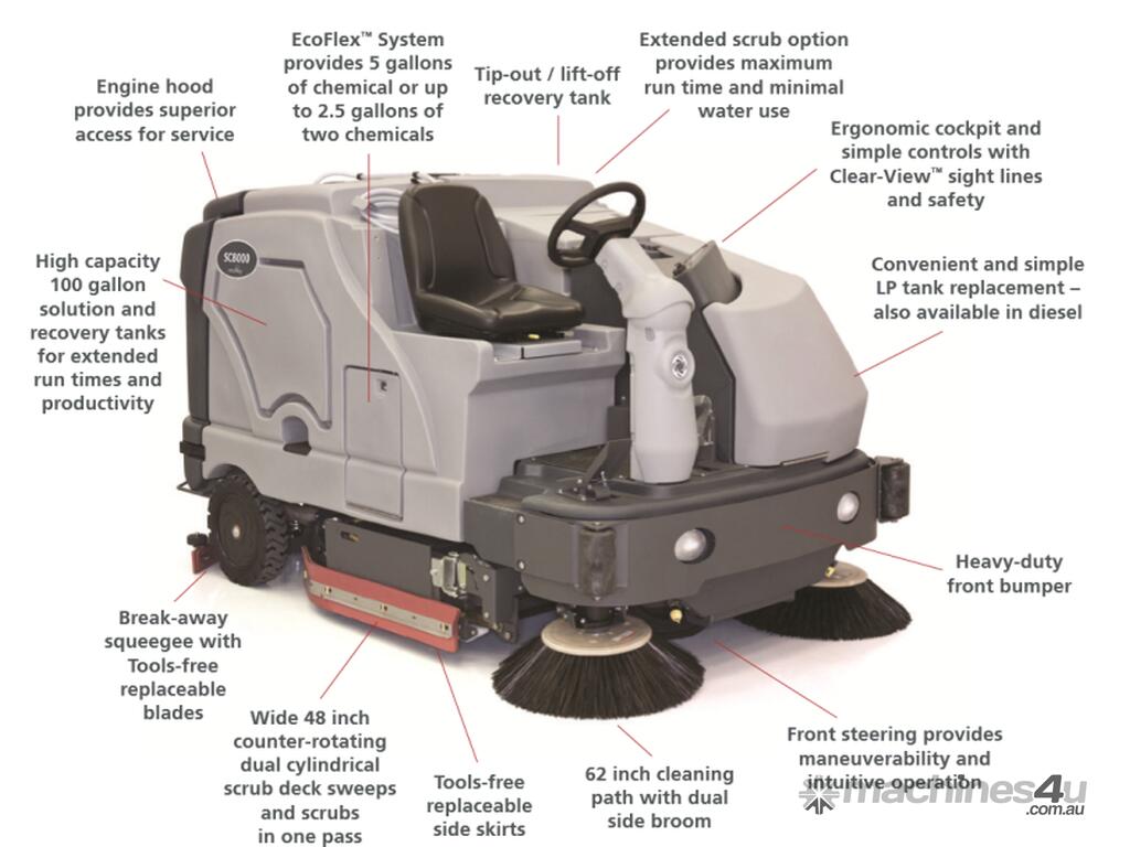 The high efficiency and productivity make this machine suited for cleaning contractors, manufacturers, warehouses, parking garages, distribution centers, bus terminals, aircraft hangars, government & national accounts.