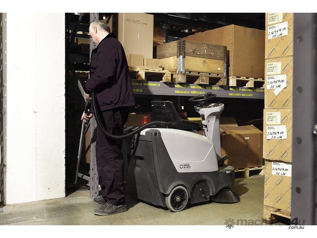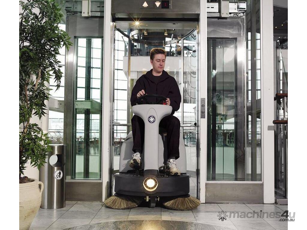 The sweeper is small enough to fit into an elevator, and manoeuverable enough to reach the tight corners. Sweeping is done quickly, quietly and efficiently. The steering column adjusts for easy access to the machine and for maximum operator comfort. The batteries have a running time of up to 2.5 hours and with the on-board charger allowing for it to be recharged anywhere.