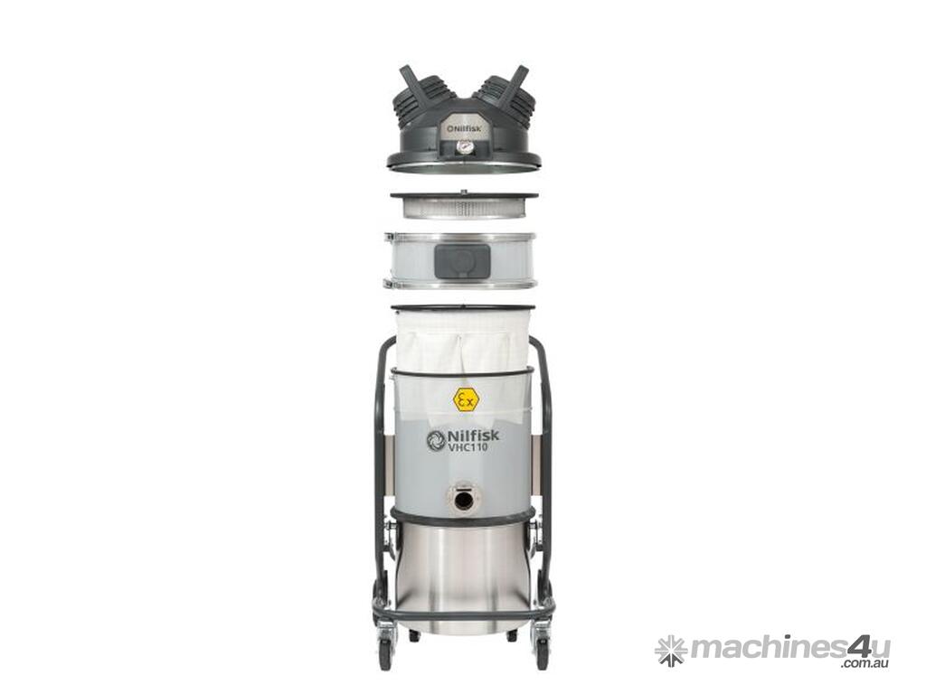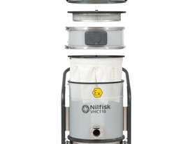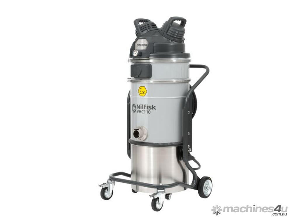 The compressed air vacuums grant respect for the environment and the most safety level for the operators even in hazardous locations. Thanks to the new generation multistage vacuum system, it guarantees good performances with the lowest air consumption ever, thus leading to a substantial cost and energy saving. Compact and light VHC110 is equipped with a 37 l container. This unit can be delivered painted or stainless steel, as well as in a flameproof ATEX-compliant version (for zones Gas 1-2 and Dust 21-22), where the new inlet ensures only Atex certified accessories to be connected on, thus avoiding any improper use thanks to the new Atex Accessories Concept. Filtration is provided by an improved Antistatic M class Star Filter. The VHC110 is always equipped with a pressure gauge. VHC110 is the ideal industrial vacuum for shipyards, metalworking companies, oil refineries, chemical industries, spray-painting facilities, rifle ranges applications, as well as in the food industry, whenever in presence of static electricity (working with sugar or flour), on building sites, and during surface treatment operations.