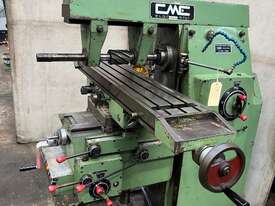 Universal CME FU-1, table 1100 mm x 240 mm, travels X - 750 mm, Y - 240 mm, Z - 420 mm, feeds & rapids, 40 int spindle, speeds 45-1800 rpm (9 off). Vertical head, slotting head, arbour supports & arbour. Operator's manual. 4 HP motor, 415 volt. Machine weight 1400 kgs Ex Govt