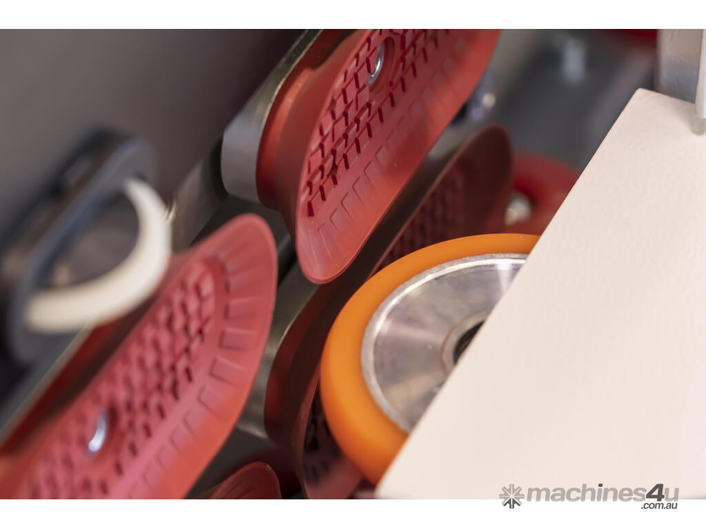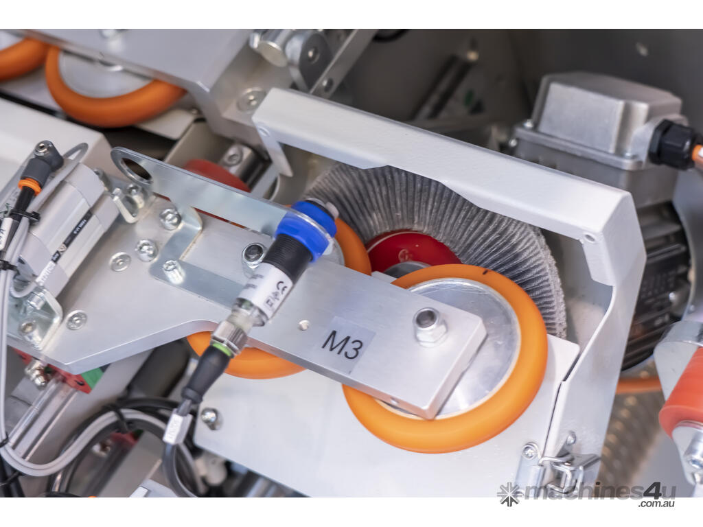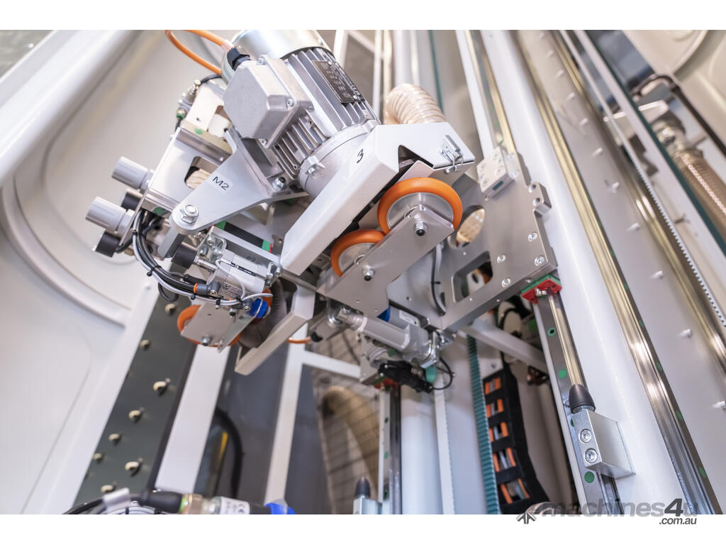 - Aura is equipped with four operating units, each consisting of two heads, to seam the four sides of the glass. Each head has a flap disc tool designed for dry machining.