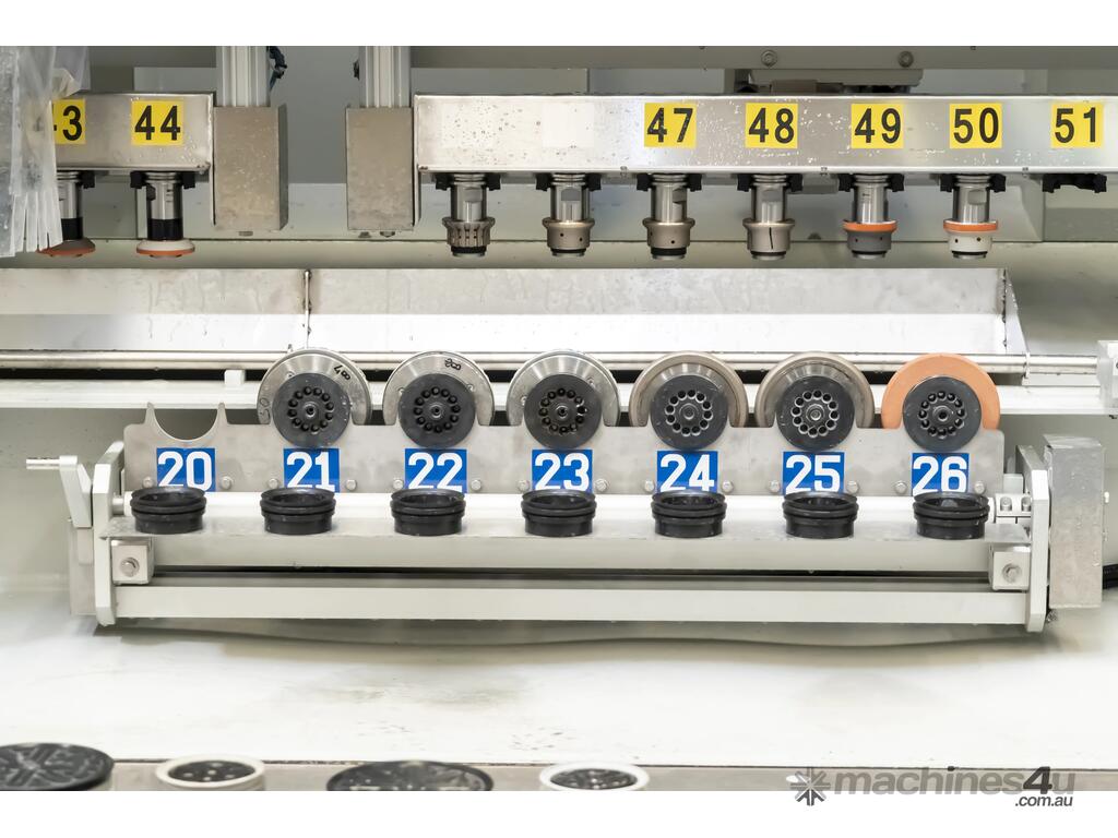 The Cms Brembana KARTESIA is specifically designed and configured to make benchtop production fast and convenient. It is able to autoamtically position its suction cups leading to minimal operator intervention. It can work with a maximum workpiece size of 3,300 X 1,600 mm and can now be equipped with up to 52 tools as a standard machine.