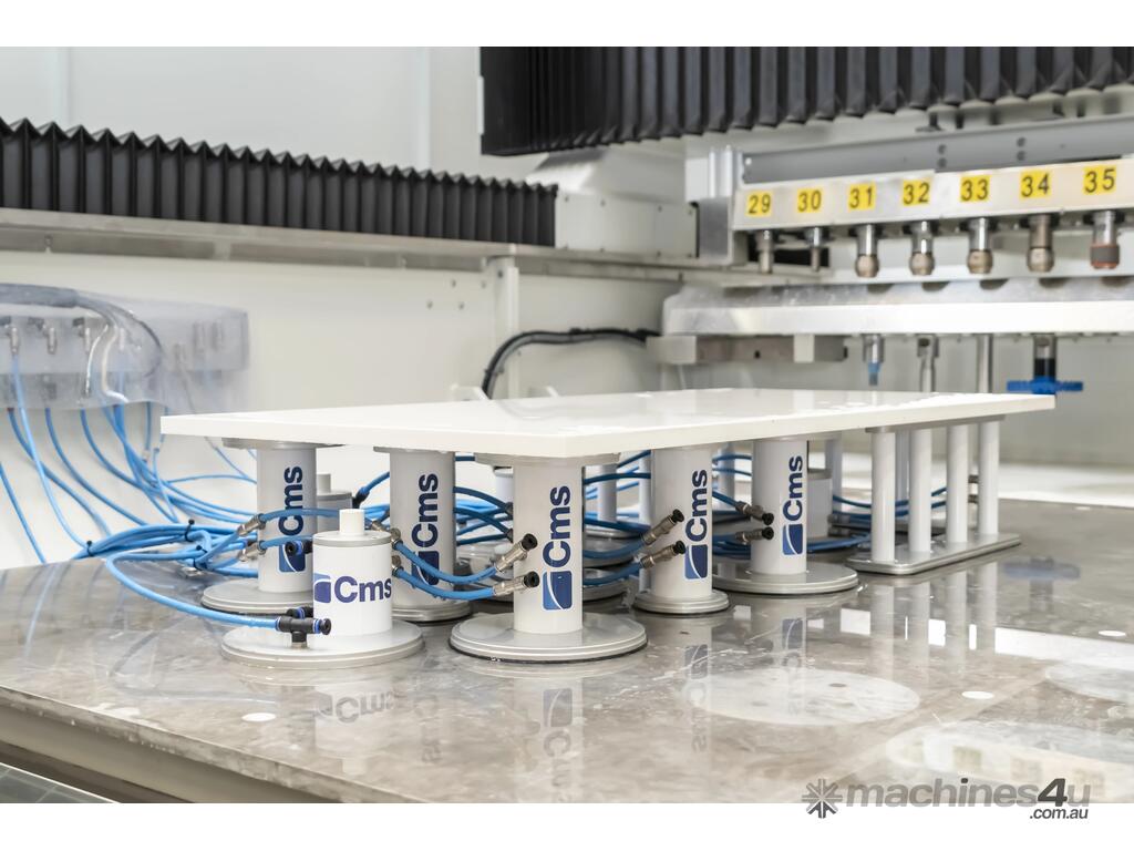 The Cms Brembana SPEED Range of CNC Machinery is specifically designed and configured to make benchtop production simple AND efficient. With a large working table of 3,600 x 2,000mm it can comfortable fit a large island benchtop or multiple vanities at once. It can now be equipped with up to 52 tools as a standard machine.