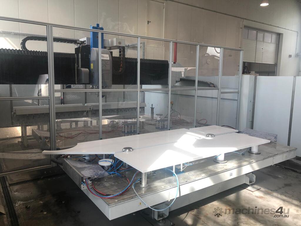 The CMS Brembana Speed TR26OF is a multi functional DUAL ROTATING TABLE CNC designed for efficient and cost effective production of stone benchtops. The unique design concept ensures that the tool is always working on a panel with the CONTINUOUS MACHINING process.