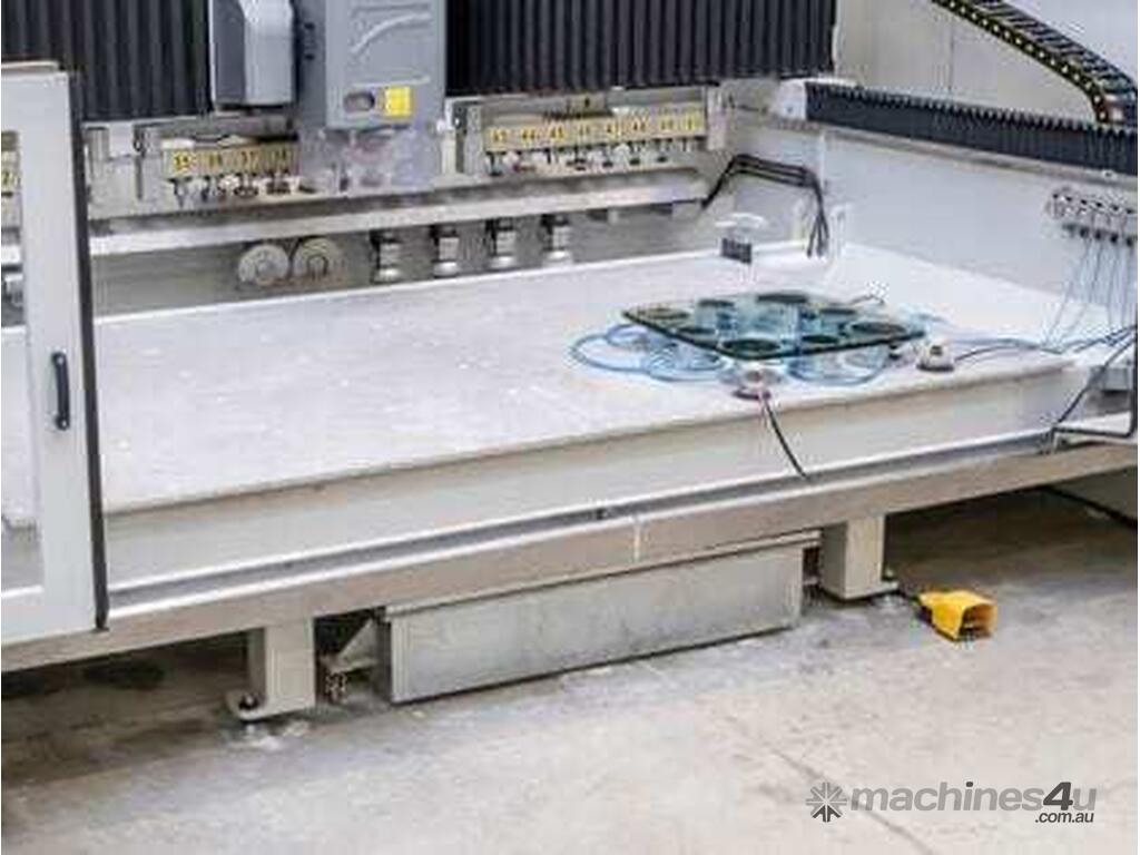 The GEA is a 3 or 4-axis (optional) Numerically Controlled machining center to machine both thin and thick flat glass as well as laminated glass and bullet-proof glass. This machine can perform all types of grinding, polishing, drilling, milling, sawing with diamond blade, V-Grooving, engraving, and 5° bevelling.