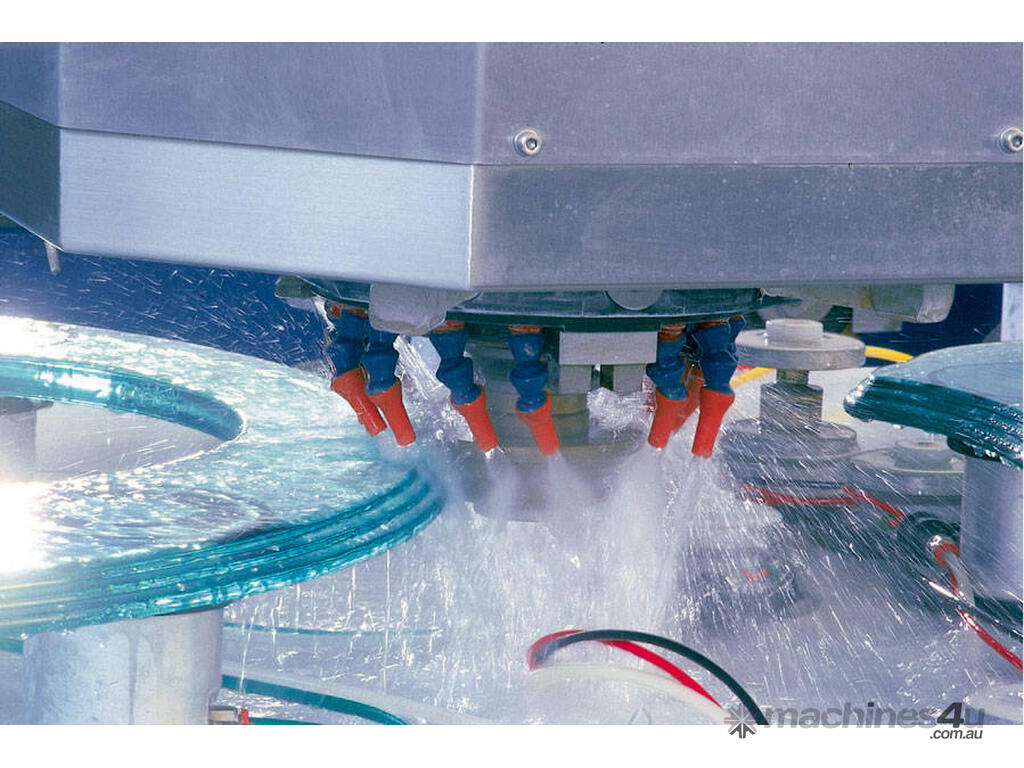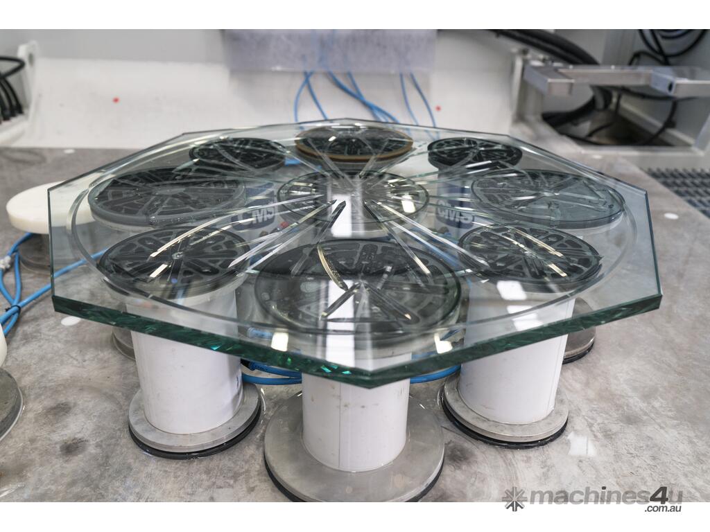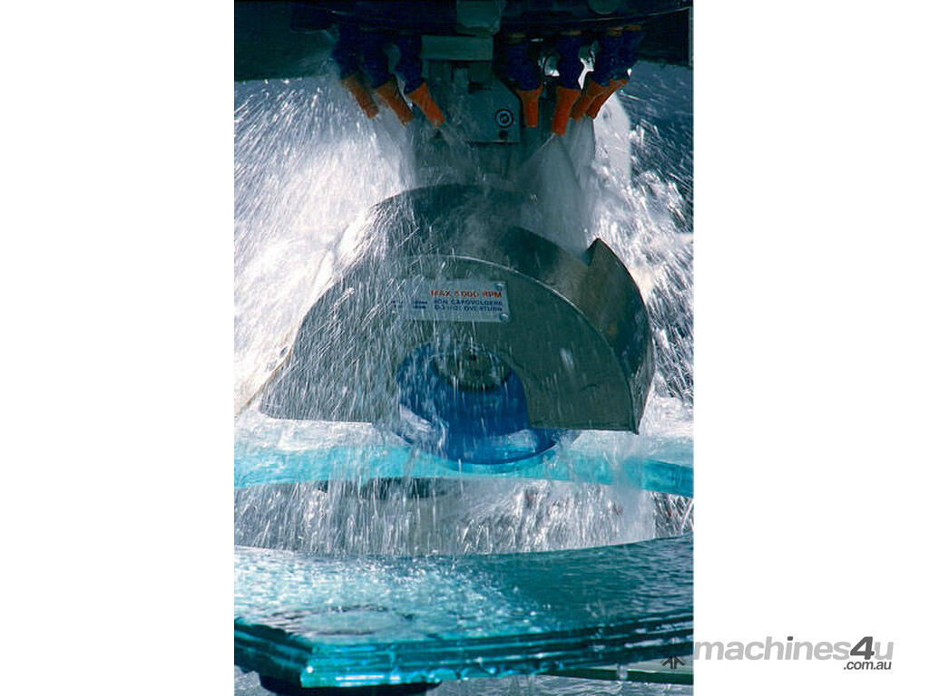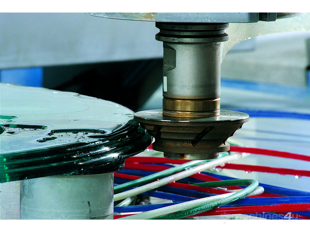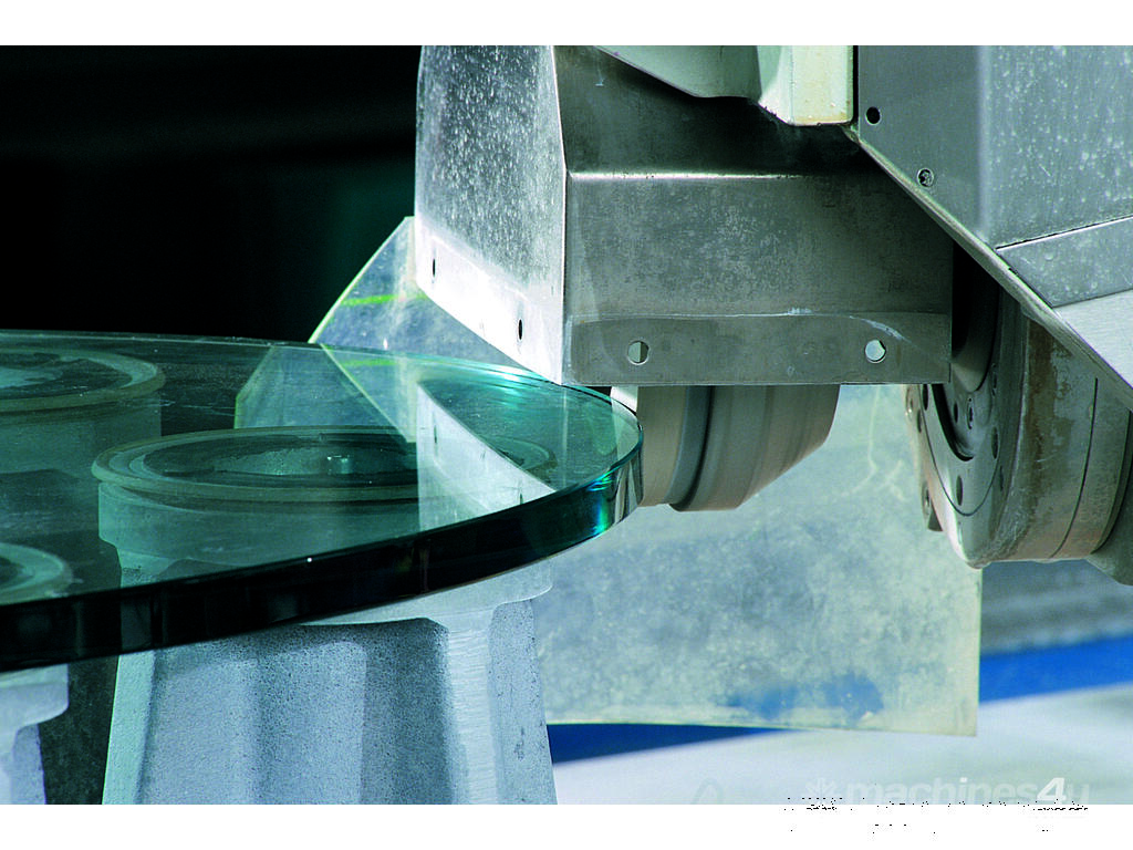 5-axis interpolated Numerically Controlled machining center with automatic tool change for the working of flat glass sheets of all thicknesses and bent glass. It carries out all types of edge grinding and polishing, arising, milling, cutting with disk, drilling, contouring, engraving, writing, variable-angle beveling operations and special machining. It’s the sturdiest machining center in the field, which makes it ideal for any type of working condition.