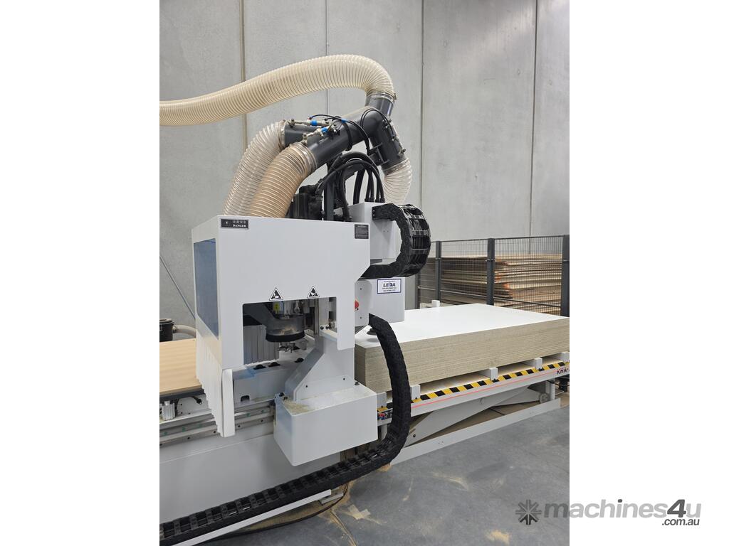 12 Hp Router Spindle, 10 Spindle Drill Head, 12 Tool Linear Tool Holder. Auto Load Grippers, Auto Push Off 100 metres/min X&Y Axis