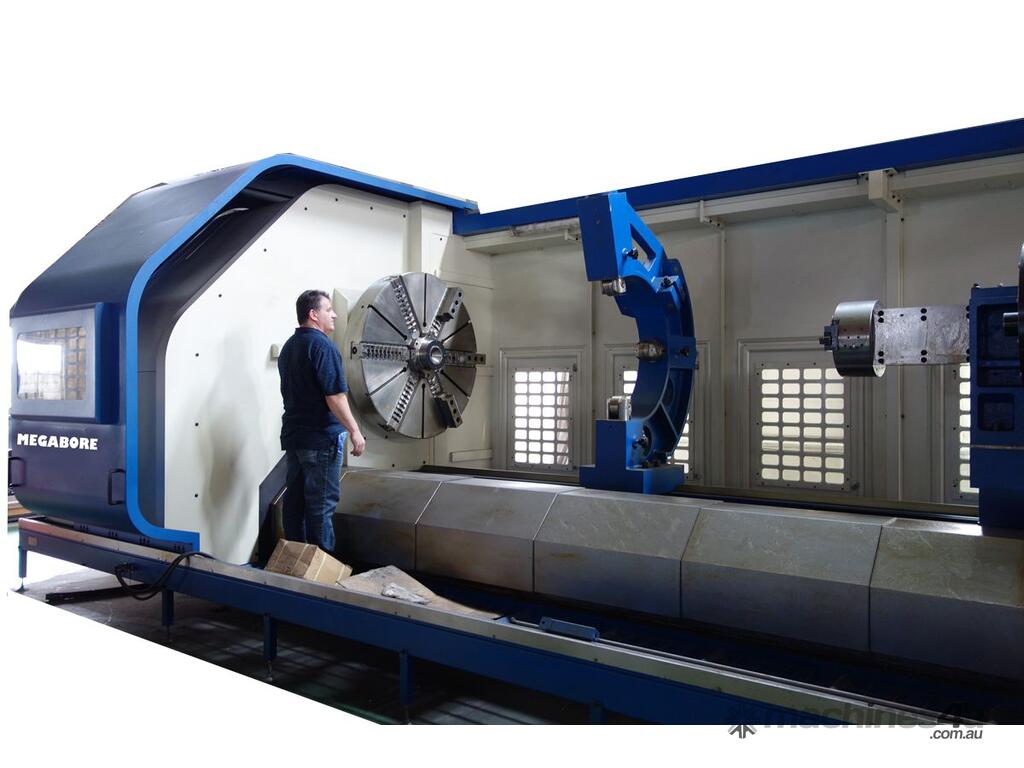 The CN series CNC Lathe is an extremely versatile heavy duty lathe that can be configured to client's requirements. Swings from 50 to 80 inch center distances to 40 ft (12 Meters) hollow Spindles up to 32 Inches. 3 Sheer Bed * One piece bed, floor type casting. * Alloy steel spindle with opposed taper roller bearings. * All gears in the headstock are hardened and precisely ground. * Automatic ranges of spindle speed through pneumatic gear shift. * Spindle speed ranges are automatically changed by M code. * Infinitely variable speed are commanded by S code. * Tool change are commanded by T code. * Auto lubrication system is equipped for headstock, carriage, and cross-slide. * Precision tapered roller bearings are equipped on the spindle and the quill. * The quill is heat treated and precisely ground. * Internal taper of quill to suit MT#6 dead center or live centre. * Turcite B anti friction material is applied on cross slide and carriage for reduce friction. * X and Z axis ballscrews are protected by covers to prevent ingress of swarf / chips and coolant.