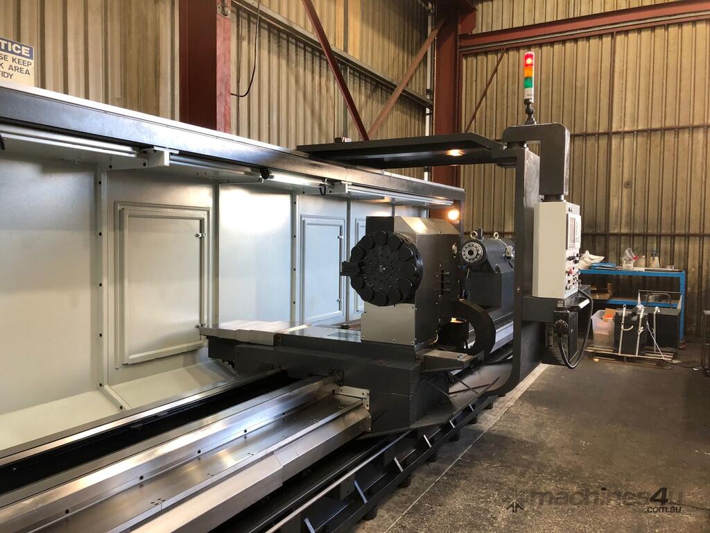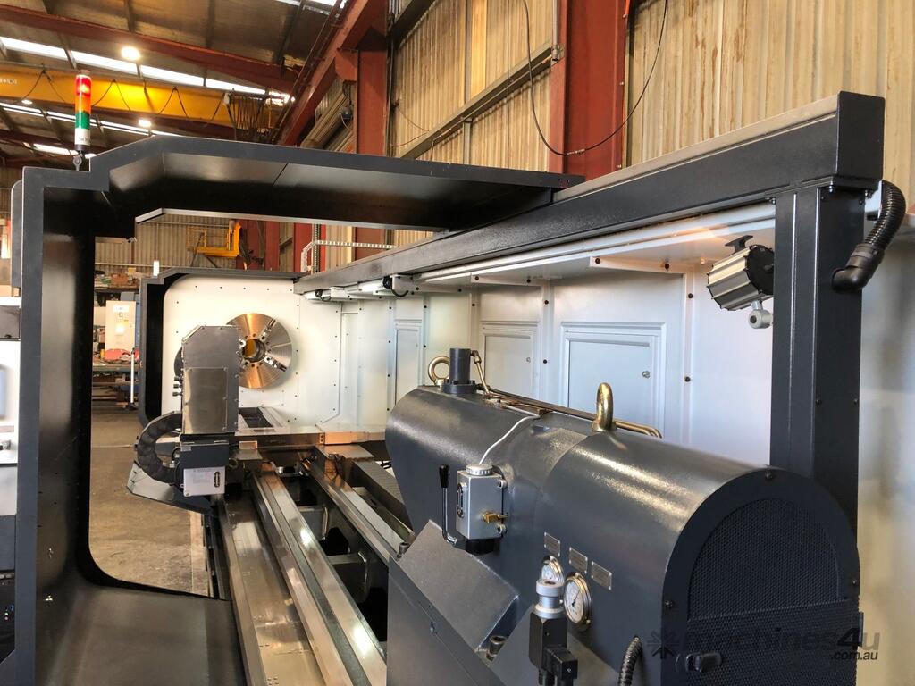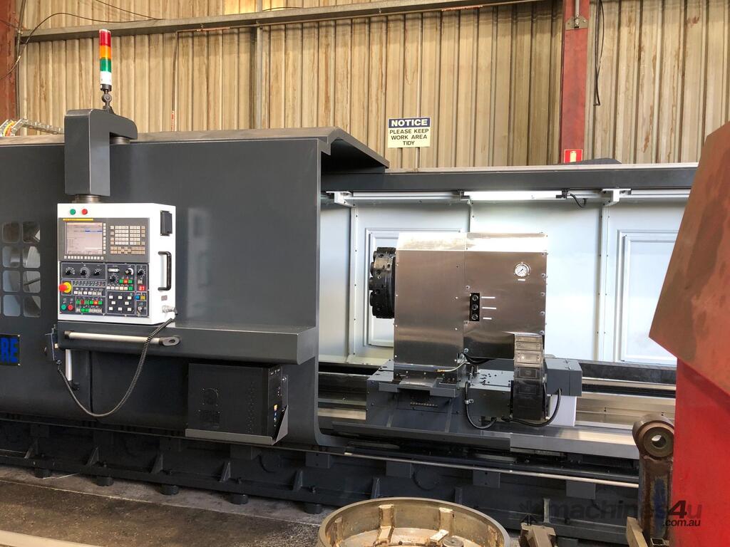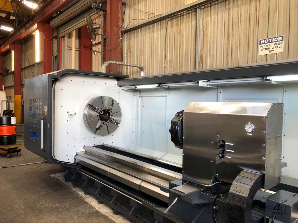 The LD series CNC Lathes offer a medium duty Lathe that is versatile and cost effective. The LD series is the most popular among our clients. Outstanding features. * One piece bed, floor type casting. * Alloy steel spindle with opposed taper roller bearings. * All gears in the headstock are hardened and precisely ground. * Automatic ranges of spindle speed through pneumatic gear shift. * Spindle speed ranges are automatically changed by M code. * Infinitely variable speed are commanded by S code. * Tool change are commanded by T code. * Auto lubrication system is equipped for headstock, carriage, and cross-slide. * Precision tapered roller bearings are equipped on the spindle and the quill. * The quill is heat treated and precisely ground. * Internal taper of quill to suit MT#5 dead center or live centre. * Turcite B anti friction material is applied on cross slide and carriage for reduce friction. * X and Z axis ballscrews are protected by covers to prevent ingress of swarf / chips and coolant.