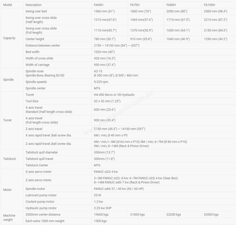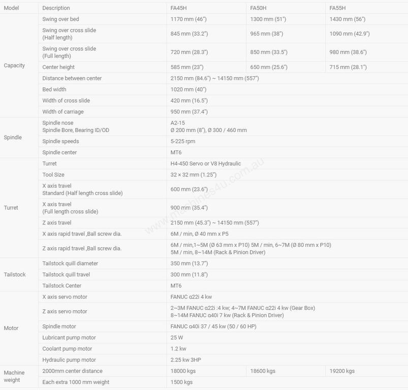 Capacity Swing over bed 1170 mm (46”) 1300 mm (51") 1430 mm (56")