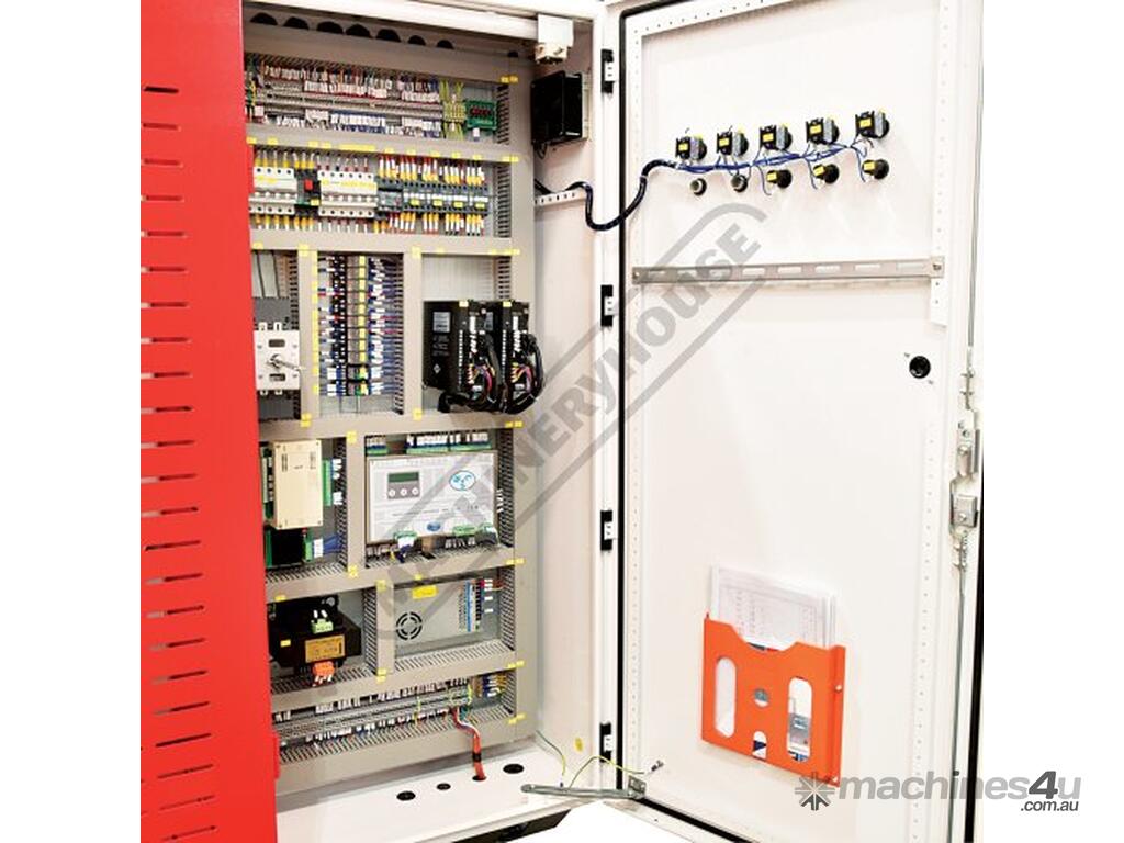 At the heart of the electrical system is the Italian made MCS safety control module which controls & monitors all pressbrake functionality, the MCS provides dual monitoring & closed loop feedback for all critical safety functions such as Hydraulic valves, Emergency stop circuits, doors, guards, foot pedal, DSP lasers to name a few functions. This ensures the machinery to be Compliant with AS/NZS 4024.1 – 2019 Safety of Machinery Series